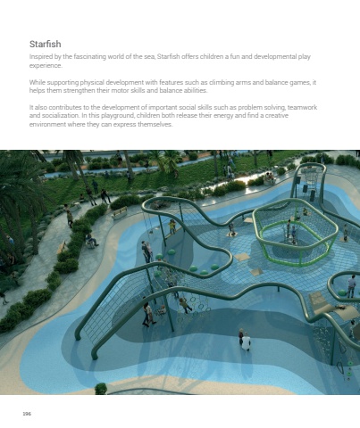 196Inspired by the fascinating world of the sea, Starfish offers children a fun and developmental play experience.While supporting physical development with features such as climbing arms and balance games, it helps them strengthen their motor skills and balance abilities.It also contributes to the development of important social skills such as problem solving, teamwork and socialization. In this playground, children both release their energy and find a creative environment where they can express themselves.Starfish