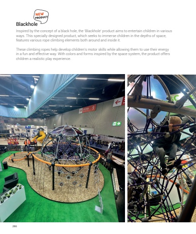 286Inspired by the concept of a black hole, the %u2018Blackhole%u2019 product aims to entertain children in various ways. This specially designed product, which seeks to immerse children in the depths of space, features various rope climbing elements both around and inside it. These climbing ropes help develop children%u2019s motor skills while allowing them to use their energy in a fun and effective way. With colors and forms inspired by the space system, the product offers children a realistic play experience.Blackhole
