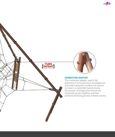 45CONNECTION ADAPTERThe connection adapter, used in the assembly of structures such as playground and urban equipment, enables the carriers to move in a controlled manner during the process of bringing the vertical and horizontal carriers together, and then performs the fixing process of these carriers.