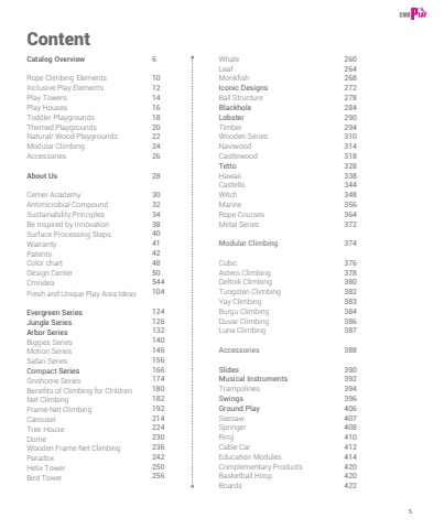 5ContentCatalog OverviewRope Climbing ElementsInclusive Play ElementsPlay TowersPlay HousesToddler PlaygroundsThemed PlaygroundsNatural/ Wood PlaygroundsModular ClimbingAccessoriesAbout UsCemer AcademyAntimicrobial CompoundSustainability PrinciplesBe Inspired by InnovationSurface Processing StepsWarrantyPatentsColor chartDesign CenterCmrideaFresh and Unique Play Area IdeasEvergreen SeriesJungle SeriesArbor SeriesBiggies SeriesMotion SeriesSafari SeriesCompact SeriesGnohome SeriesBenefits of Climbing for ChildrenNet ClimbingFrame Net ClimbingCarouselTree HouseDomeWooden Frame Net ClimbingParadoxHelix TowerBird TowerWhaleLeafMonkfishIconic DesignsBall StructureBlackholeLobsterTimberWooden SeriesNaviwoodCastlewoodTettoHawaiiCastelloWitchMarineRope CoursesMetal SeriesModular ClimbingCubicAstero ClimbingDeltoik ClimbingTungsten ClimbingYay ClimbingBurgu ClimbingDuvar ClimbingLuna ClimbingAccessoriesSlidesMusical InstrumentsTrampolinesSwingsGround PlaySeesawSpringerRingCable CarEducation ModulesComplementary ProductsBasketball HoopBoards610121416182022242628303234384041424850544104124126132140146156166174180182192214224230236242250256260264268272278284290294310314318328338344348356364372374376378380382383384386387388390392394396406407408410412414420420422