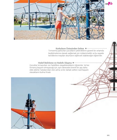 181T%u0131rmanma parkurlar%u0131 %u00e7ocuklar%u0131n yeteneklerini g%u00fcvenli bir ortamda ke%u015ffetmelerine olanak sa%u011flamak i%u00e7in m%u00fckemmeldir ve bu sayede kendilerine meydan okuman%u0131n e%u011flenceli olabilece%u011fini %u00f6%u011frenirler.Korkular%u0131n %u00dcstesinden Gelme%u00c7ocuklar t%u0131rman%u0131rken zor hedeflere ula%u015fabileceklerini %u00f6%u011frenirler. Ve her t%u0131rman%u0131%u015f ba%u015far%u0131l%u0131 olmayaca%u011f%u0131 i%u00e7in, ayn%u0131 derecede %u00f6nemli bir %u015fey daha elde ederler: hatalar%u0131ndan ders alma ve bir dahaki sefere nas%u0131l ba%u015far%u0131l%u0131 olacaklar%u0131n%u0131 bulma f%u0131rsat%u0131.Hedef Belirleme ve Hedefe Ula%u015fma