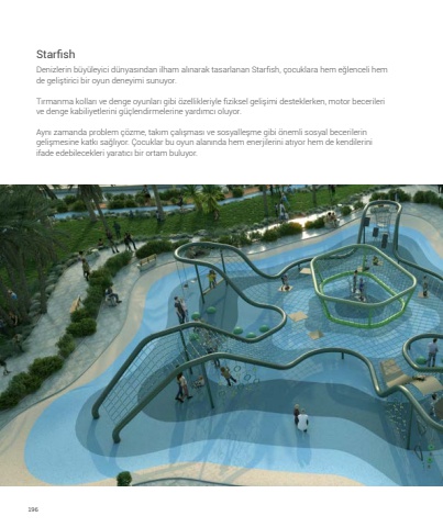 196Denizlerin b%u00fcy%u00fcleyici d%u00fcnyas%u0131ndan ilham al%u0131narak tasarlanan Starfish, %u00e7ocuklara hem e%u011flenceli hem de geli%u015ftirici bir oyun deneyimi sunuyor. T%u0131rmanma kollar%u0131 ve denge oyunlar%u0131 gibi %u00f6zellikleriyle fiziksel geli%u015fimi desteklerken, motor becerileri ve denge kabiliyetlerini g%u00fc%u00e7lendirmelerine yard%u0131mc%u0131 oluyor. Ayn%u0131 zamanda problem %u00e7%u00f6zme, tak%u0131m %u00e7al%u0131%u015fmas%u0131 ve sosyalle%u015fme gibi %u00f6nemli sosyal becerilerin geli%u015fmesine katk%u0131 sa%u011fl%u0131yor. %u00c7ocuklar bu oyun alan%u0131nda hem enerjilerini at%u0131yor hem de kendilerini ifade edebilecekleri yarat%u0131c%u0131 bir ortam buluyor.Starfish