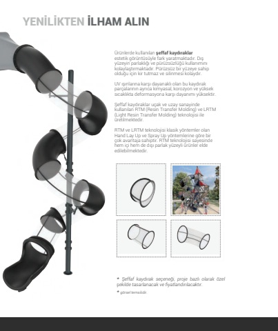 38%u00dcr%u00fcnlerde kullan%u0131lan %u015feffaf kayd%u0131raklarestetik g%u00f6r%u00fcnt%u00fcs%u00fcyle fark yaratmaktad%u0131r. D%u0131%u015f y%u00fczeyin parlakl%u0131%u011f%u0131 ve p%u00fcr%u00fczs%u00fczl%u00fc%u011f%u00fc kullan%u0131m%u0131n%u0131 kolayla%u015ft%u0131rmaktad%u0131r. P%u00fcr%u00fczs%u00fcz bir y%u00fczeye sahip oldu%u011fu i%u00e7in kir tutmaz ve silinmesi kolayd%u0131r. UV %u0131%u015f%u0131nlar%u0131na kar%u015f%u0131 dayanakl%u0131 olan bu kayd%u0131rak par%u00e7alar%u0131n%u0131n ayr%u0131ca kimyasal, korozyon ve y%u00fcksek s%u0131cakl%u0131kta deformasyona kar%u015f%u0131 dayan%u0131m%u0131 y%u00fcksektir. %u015eeffaf kayd%u0131raklar u%u00e7ak ve uzay sanayinde kullan%u0131lan RTM (Resin Transfer Molding) ve LRTM (Light Resin Transfer Molding) teknolojisi ile %u00fcretilmektedir. RTM ve LRTM teknolojisi klasik y%u00f6ntemler olan Hand Lay Up ve Spray Up y%u00f6ntemlerine g%u00f6re bir %u00e7ok avantaja sahiptir. RTM teknolojisi sayesinde hem i%u00e7i hem de d%u0131%u015f%u0131 parlak y%u00fczeyli %u00fcr%u00fcnler elde edilebilmektedir.YEN%u0130L%u0130KTEN %u0130LHAM ALIN* %u015eeffaf kayd%u0131rak se%u00e7ene%u011fi, proje bazl%u0131 olarak %u00f6zel %u015fekilde tasarlanacak ve fiyatland%u0131r%u0131lacakt%u0131r.* g%u00f6rsel temsilidir.