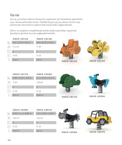 4080,9 x 0,35 x 0,9 m0,85 x 0,35 x 0,8 m0,8 x 0,35 x 0,8 m1,2 x 0,35 x 0,9 m7,1 m%u00b27 m%u00b27 m%u00b27,8 m%u00b211112-122-122-122-120,6 m0,6 m0,6 m0,65 mDGCS 1012ADGCS 1017ADGCS 1012ADGCS 1017ADGCS 1013ADGCS 1029ADGCS 1013ADGCS 1029AZ%u0131p z%u0131p, %u00e7ocuklara sal%u0131n%u0131m deneyimin ya%u015fatmas%u0131 i%u00e7in tasarlanan geleneksel oyun aksesuarlar%u0131ndan biridir. %u00d6zellikle k%u00fc%u00e7%u00fck ya%u015f %u00e7ocuklar%u0131n tercihi olup psikomotor becerilerinin geli%u015fiminde b%u00fcy%u00fck katk%u0131 sa%u011flamaktad%u0131r. Ellerini ve ayaklar%u0131n%u0131 koyabilece%u011fi destek ald%u0131%u011f%u0131 tutamaklar sayesinde g%u00f6vdesine gereken kuvveti sa%u011flayabilmektedir.Z%u0131p z%u0131p0,35 x 1,1 x 0,85 m 1,0 x 0,45 x 0,8 m7,6 m%u00b2 7,6 m%u00b21 12-12 2-120,65 m 0,6 mDGCS 1030ADGCS 1030ADGCS 1057ADGCS 1057A