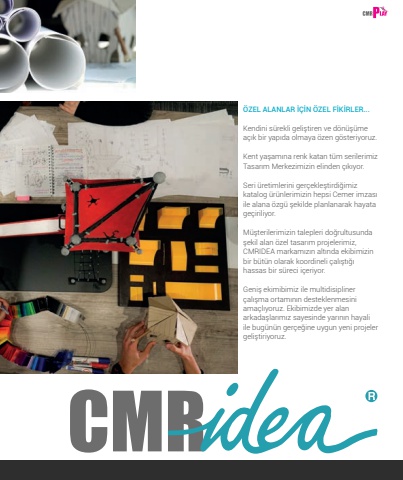 51%u00d6ZEL ALANLAR %u0130%u00c7%u0130N %u00d6ZEL F%u0130K%u0130RLER...Kendini s%u00fcrekli geli%u015ftiren ve d%u00f6n%u00fc%u015f%u00fcme a%u00e7%u0131k bir yap%u0131da olmaya %u00f6zen g%u00f6steriyoruz. Kent ya%u015fam%u0131na renk katan t%u00fcm serilerimiz Tasar%u0131m Merkezimizin elinden %u00e7%u0131k%u0131yor. Seri %u00fcretimlerini ger%u00e7ekle%u015ftirdi%u011fimiz katalog %u00fcr%u00fcnlerimizin hepsi Cemer imzas%u0131 ile alana %u00f6zg%u00fc %u015fekilde planlanarak hayata ge%u00e7iriliyor.M%u00fc%u015fterilerimizin talepleri do%u011frultusunda %u015fekil alan %u00f6zel tasar%u0131m projelerimiz, CMRIDEA markam%u0131z%u0131n alt%u0131nda ekibimizin bir b%u00fct%u00fcn olarak koordineli %u00e7al%u0131%u015ft%u0131%u011f%u0131 hassas bir s%u00fcreci i%u00e7eriyor.Geni%u015f ekimibimiz ile multidisipliner %u00e7al%u0131%u015fma ortam%u0131n%u0131n desteklenmesini ama%u00e7l%u0131yoruz. Ekibimizde yer alan arkada%u015flar%u0131m%u0131z sayesinde yar%u0131n%u0131n hayali ile bug%u00fcn%u00fcn ger%u00e7e%u011fine uygun yeni projeler geli%u015ftiriyoruz.