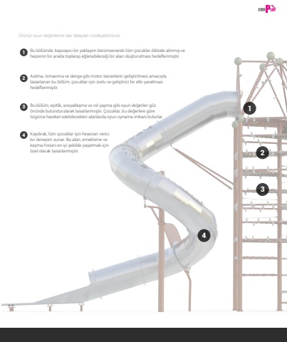 791234%u00dcr%u00fcn%u00fcn oyun de%u011ferlerine dair detaylar%u0131 inceleyebilirsiniz.Bu b%u00f6l%u00fcmde, kapsay%u0131c%u0131 bir yakla%u015f%u0131m benimsenerek t%u00fcm %u00e7ocuklar dikkate al%u0131nm%u0131%u015f ve hepsinin bir arada toplan%u0131p e%u011flenebilece%u011fi bir alan olu%u015fturulmas%u0131 hedeflenmi%u015ftir.As%u0131lma, t%u0131rmanma ve denge gibi motor becerilerin geli%u015ftirilmesi amac%u0131yla tasarlanan bu b%u00f6l%u00fcm, %u00e7ocuklar i%u00e7in zorlu ve geli%u015ftirici bir etki yaratmas%u0131 hedeflenmi%u015ftir.Kayd%u0131rak, t%u00fcm %u00e7ocuklar i%u00e7in heyecan verici bir deneyim sunar. Bu alan, emekleme ve kayma hissini en iyi %u015fekilde ya%u015fatmak i%u00e7in %u00f6zel olarak tasarlanm%u0131%u015ft%u0131r.Bu b%u00f6l%u00fcm, e%u015fitlik, sosyalle%u015fme ve rol yapma gibi oyun de%u011ferleri g%u00f6z %u00f6n%u00fcnde bulundurularak tasarlanm%u0131%u015ft%u0131r. %u00c7ocuklar, bu de%u011ferlere g%u00f6re %u00f6zg%u00fcrce hareket edebilecekleri alanlarda oyun oynama imkan%u0131 bulurlar.1234
