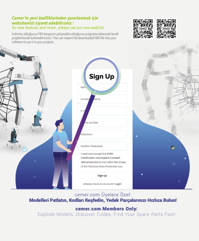 8 CEMERCemer%u2019in yeni %u00f6zelliklerinden yararlanmak i%u00e7in websitemizi ziyaret edebilirsiniz / for new features and more , please see our new websitecemer.com Members Only:Explode Models, Discover Codes, Find Your Spare Parts Fast!cemer.com %u00dcyelere %u00d6zel:Modelleri Patlat%u0131n, Kodlar%u0131 Ke%u015ffedin, Yedek Par%u00e7alar%u0131n%u0131z%u0131 H%u0131zl%u0131ca Bulun!%u0130ndirmi%u015f oldu%u011funuz FBX dosyas%u0131n%u0131 %u00e7al%u0131%u015fmakta oldu%u011funuz programa aktararak kendi projelerinizde kullanabilirsiniz / You can import the downloaded FBX file into your software to use it in your projects.