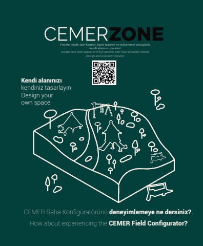 CEMER 9How about experiencing the CEMER Field Configurator?Projelerinizde tam kontrol, basit tasar%u0131m ve m%u00fckemmel sonu%u00e7larla kendi alan%u0131n%u0131z%u0131 yarat%u0131n!Create your own space with full control over your projects, simple design and excellent results!Design your own spaceCEMER Saha Konfig%u00fcrat%u00f6r%u00fcn%u00fc deneyimlemeye ne dersiniz?Kendi alan%u0131n%u0131z%u0131 kendiniz tasarlay%u0131n