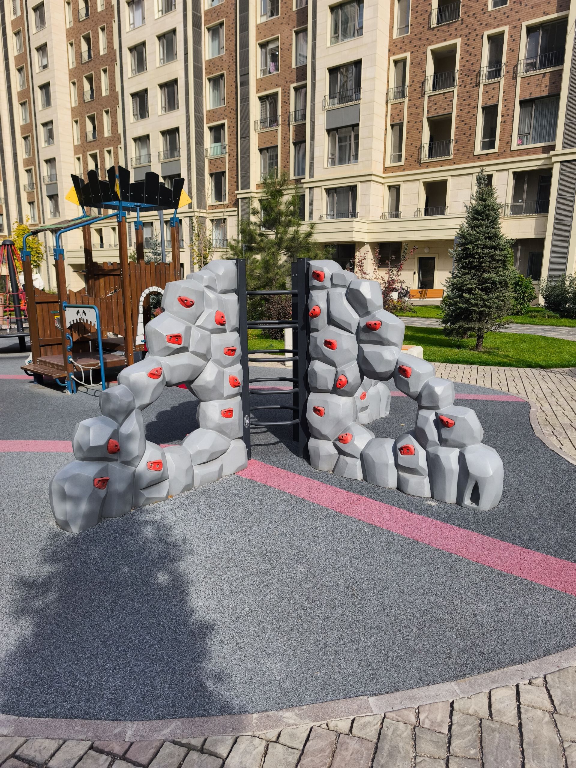 Climbing Wall Group CA 934 supports children's physical development and promotes skills such as strength, balance, agility, and coordination. Thanks to its indented-protruded structure inspired by natural rock form and ergonomic handles, it is very fun for children. It is a play equipment that also allows rope climbing with double slides.
