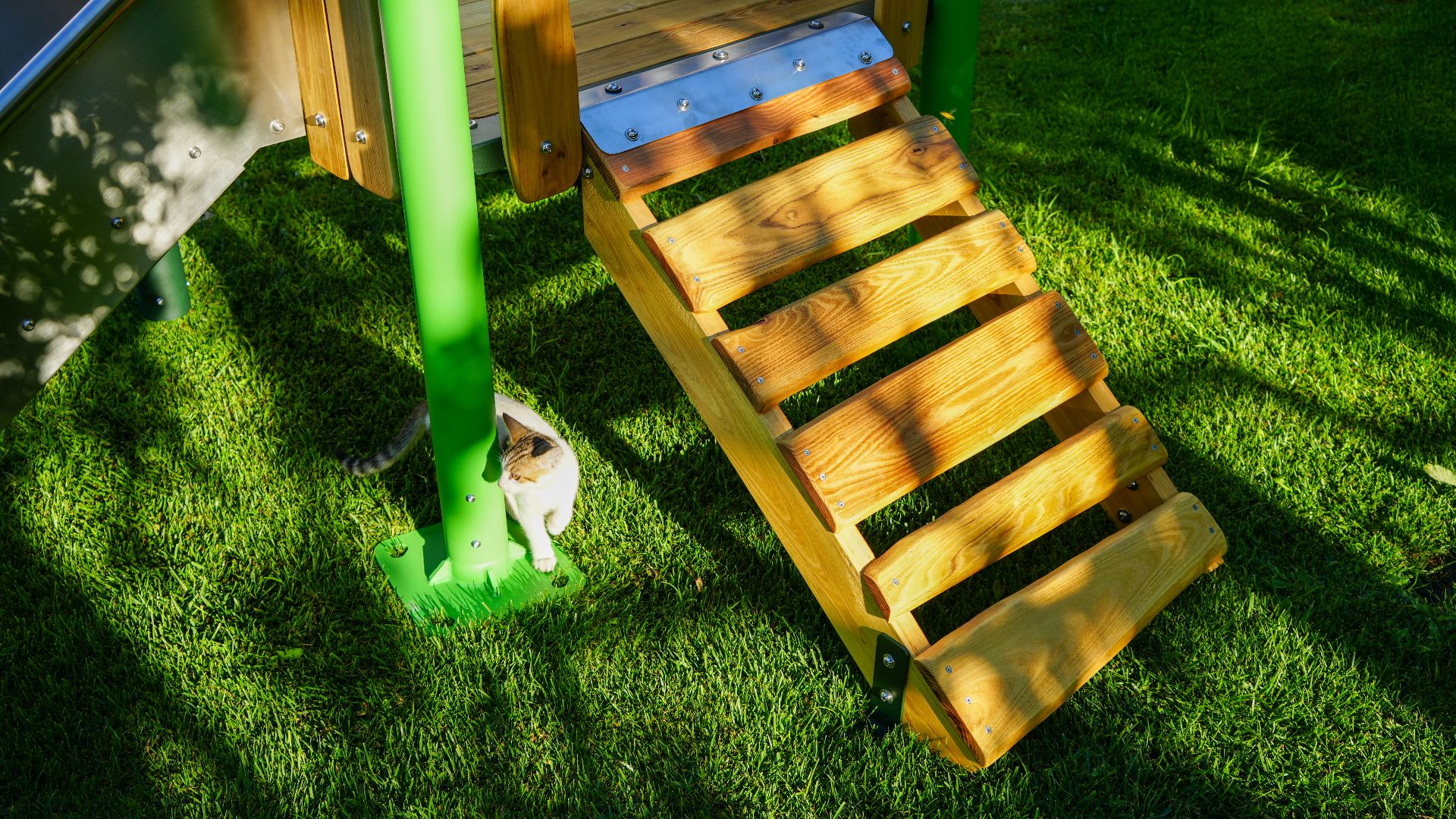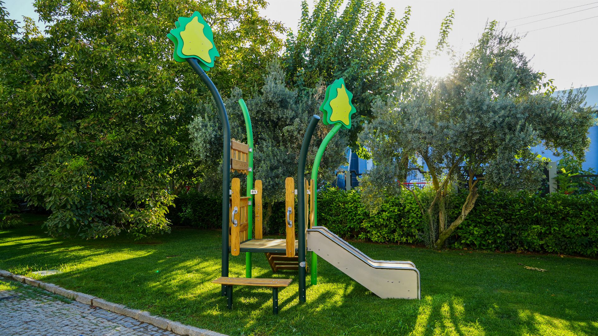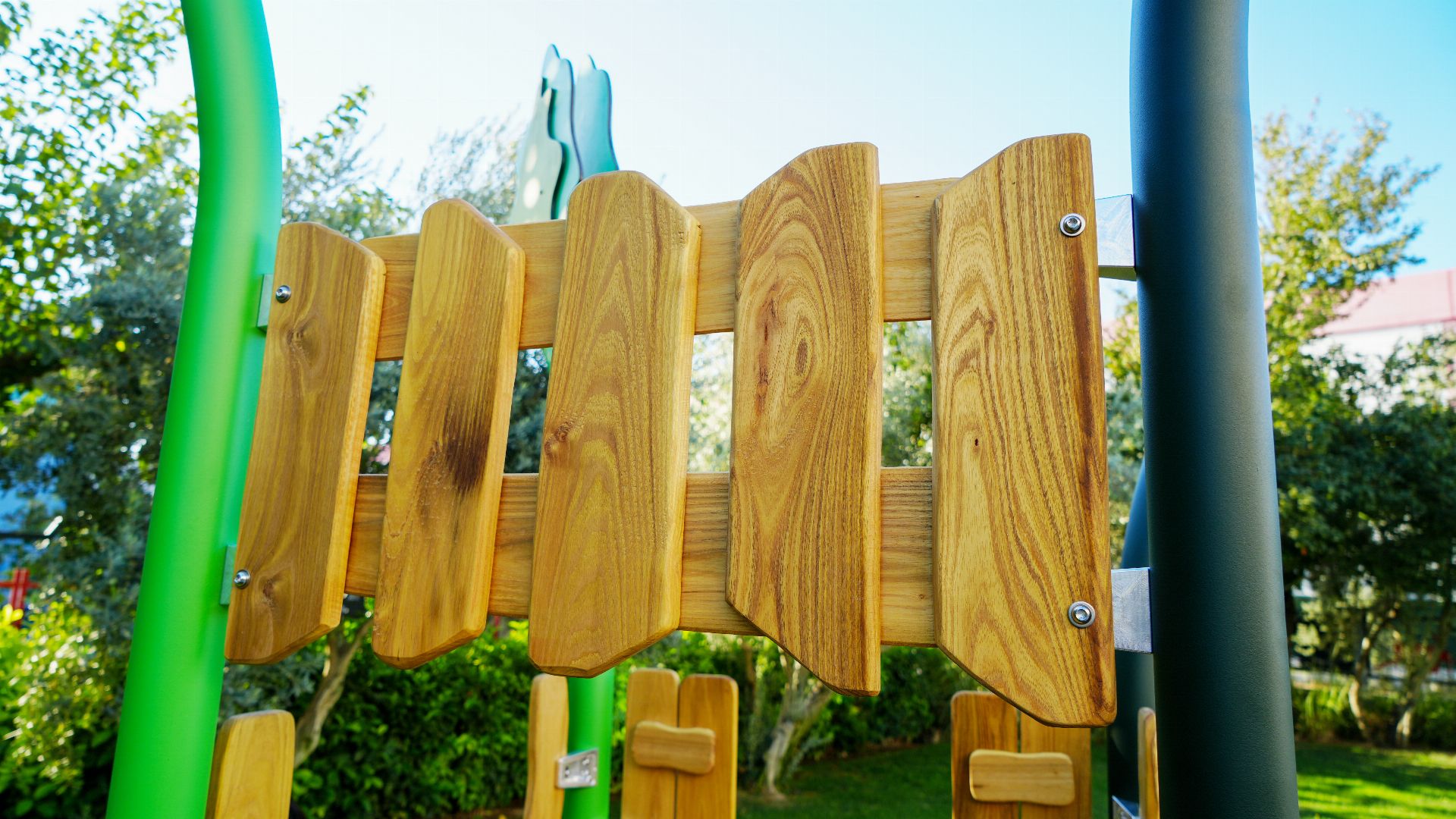 Evergreen Series RGES 101-P, a playground with Robinia wood in its materials, is a multi-functional area aimed at allowing children to have fun and supporting their physical development. It is equipped with a slide and various play elements. Thanks to its natural color tones and nature-themed design, it blends in with the environment. The product has 1 slide made of HDPE material.