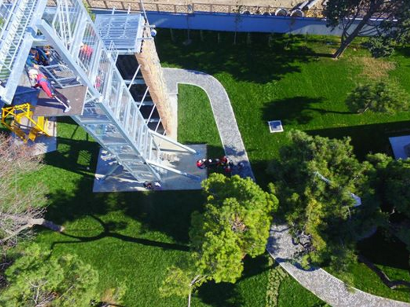 Free Fall - XGFF 101 is a special adventure play equipment designed for adrenaline and thrill-seekers, which can be used outdoors. It provides users with versatile physical activities such as hanging, balancing, pulling, swinging, and climbing, offering both a fun and developmental experience. The product, manufactured in accordance with TS EN 1176 standards, is designed with safety in mind. With its high-speed descent feature, it is an ideal choice especially for adventure parks and thematic areas.