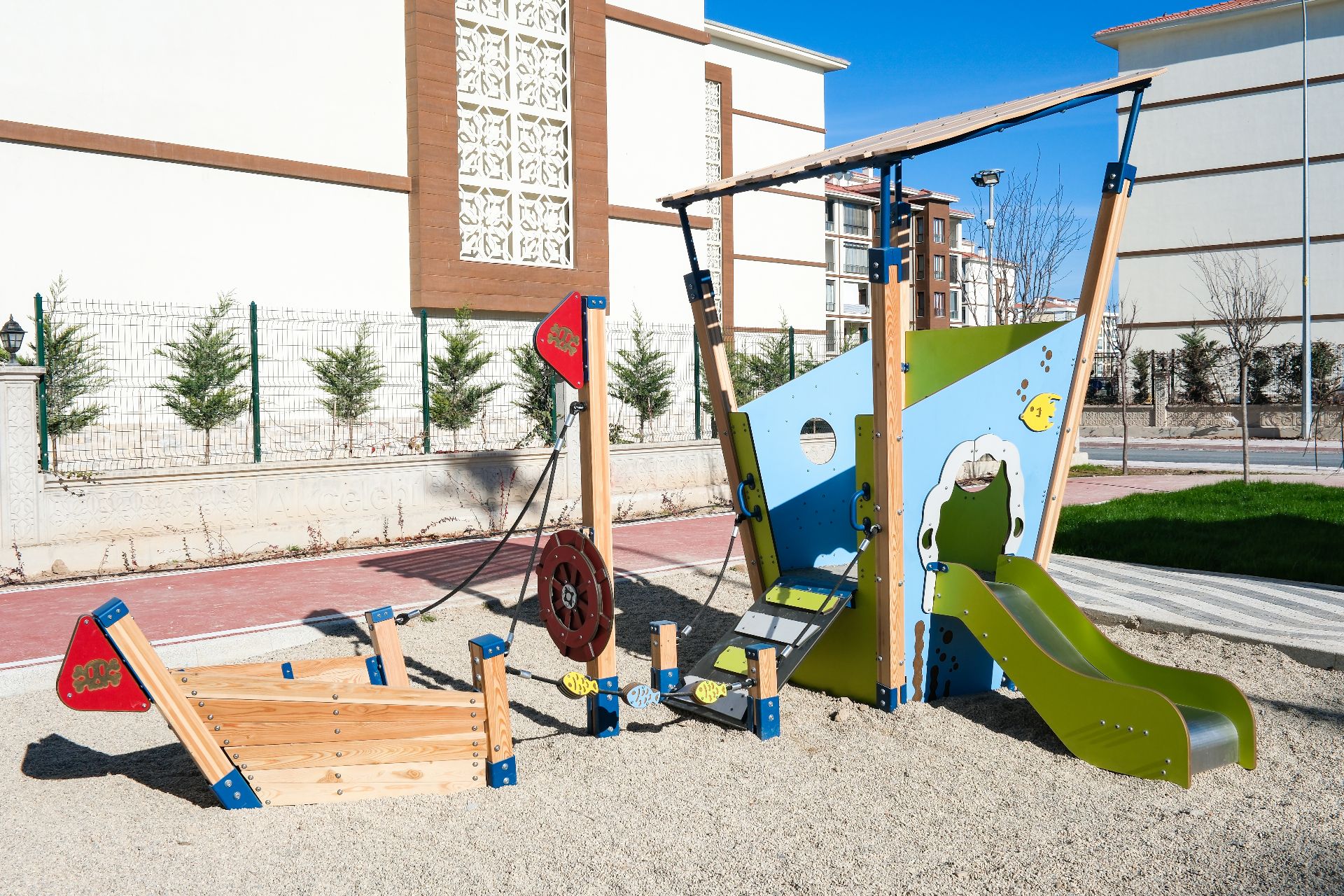 MGNS 102-P Naviwood Series Wooden Playgroup offers a safe and fun play environment for children, designed with natural wood material that reflects the beauties of nature. Enriched with slides, climbing walls, connecting bridges, and interactive play elements, this group helps children develop their motor skills, balance abilities, and social interactions. Thanks to its durable structure and aesthetic design, it provides long-lasting use both indoors and outdoors.