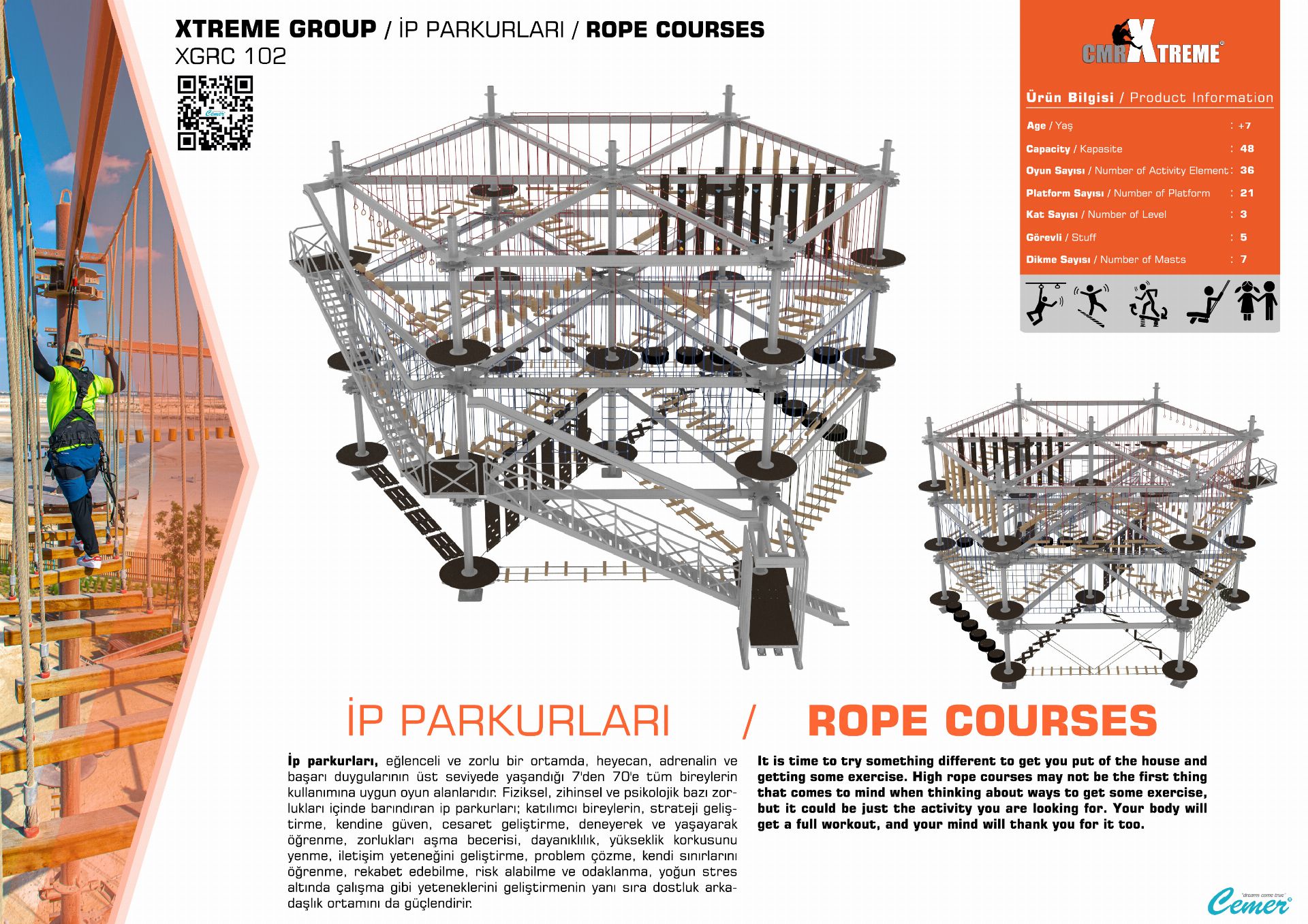 XGRC 102 is a dynamic playgroup specially designed for adventure lovers to improve physical and mental skills. This course reinforces users' abilities such as developing strategy, gaining self-confidence, and increasing courage with rope crossings at various difficulty levels that require balance, speed, and coordination. It allows all individuals from 7 to 70 to experience exciting and adrenaline-filled moments in a fun and safe environment.