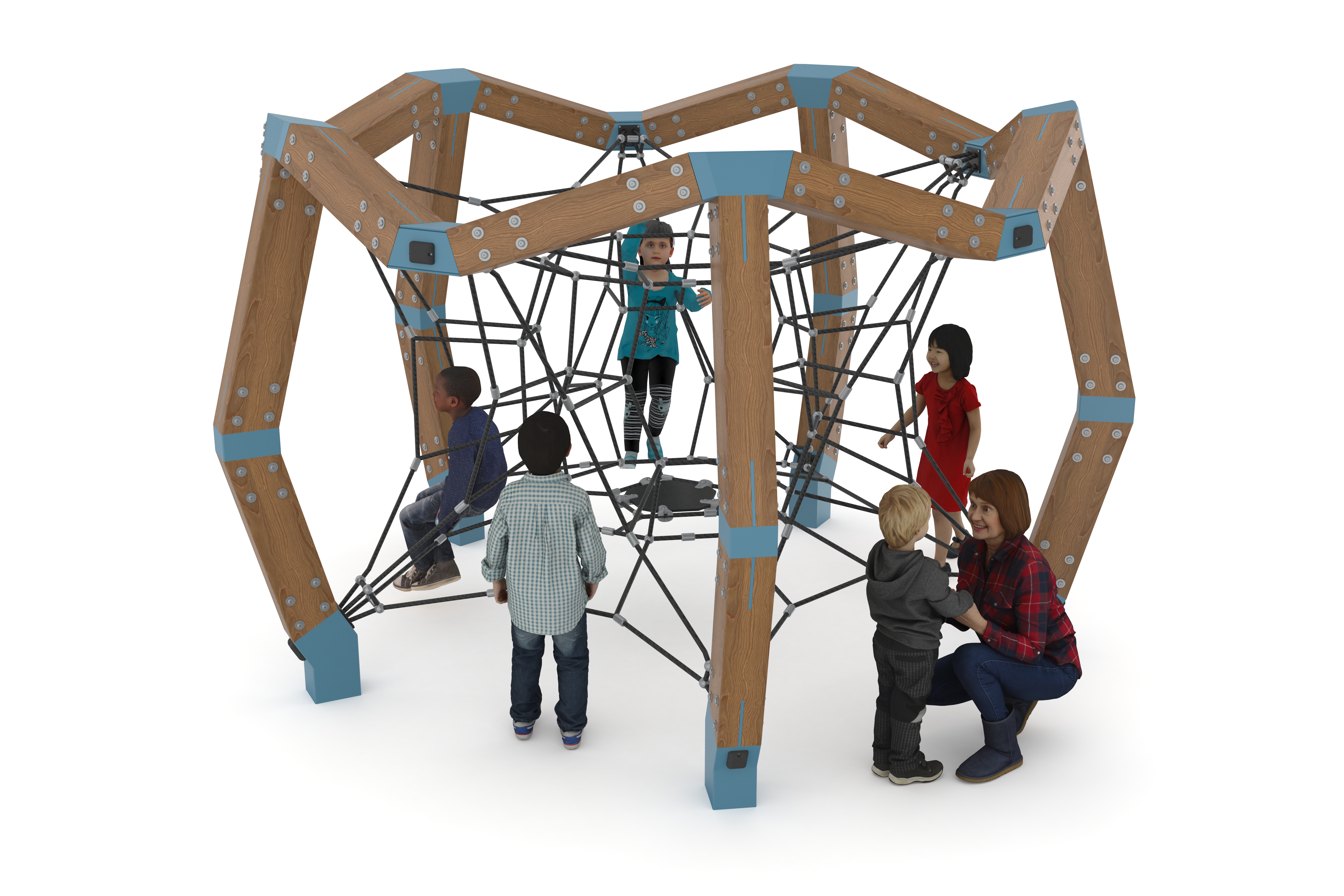 Spider Group Climbing Group SGW 1001 is a modern playground where children can funly and safely develop their physical skills. SGW 1001, which consists of a wooden frame, is reinforced with metal parts. Offering children a different experience with 3D rope, this playgroup helps children increase their agility, balance, and strength skills.