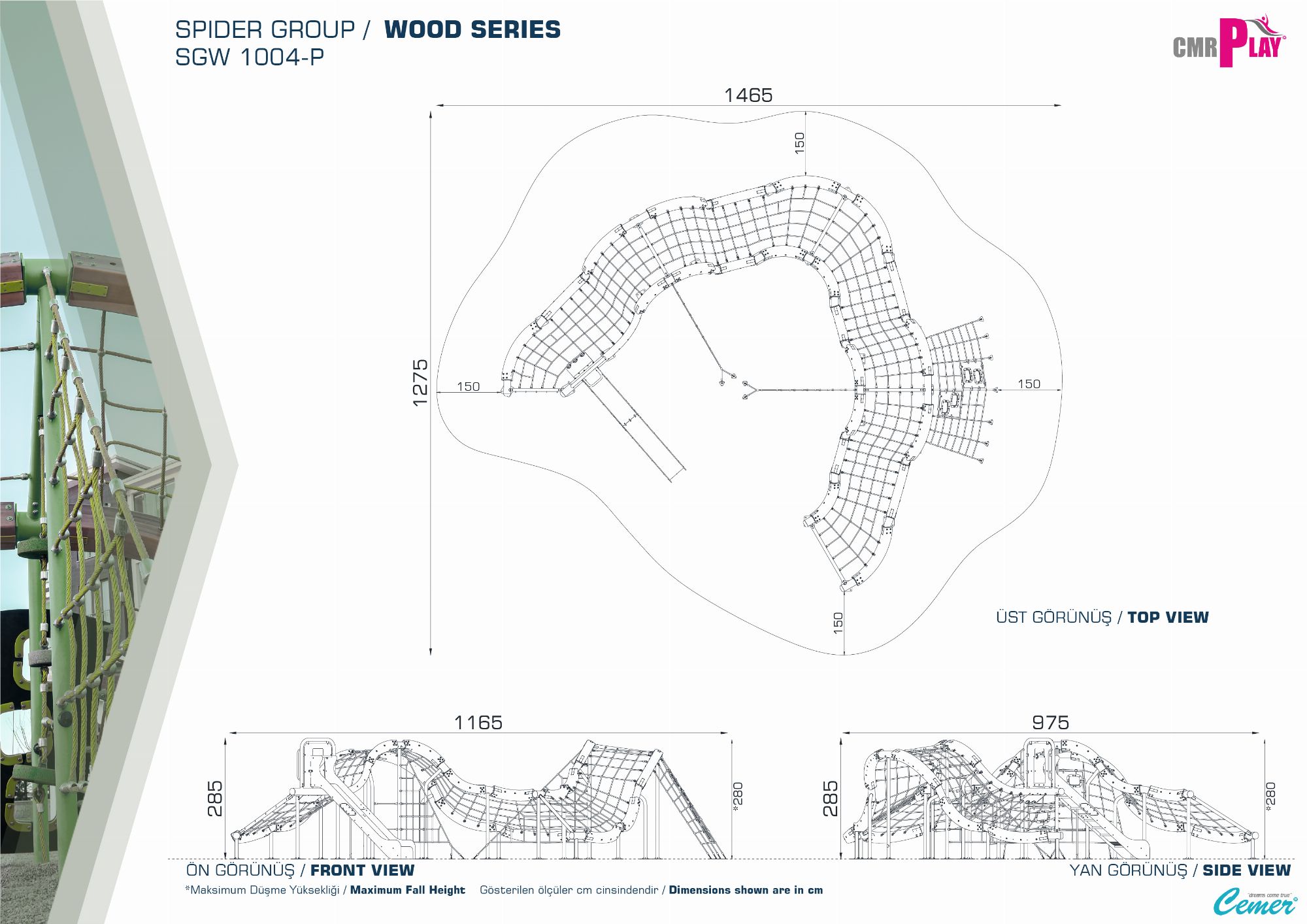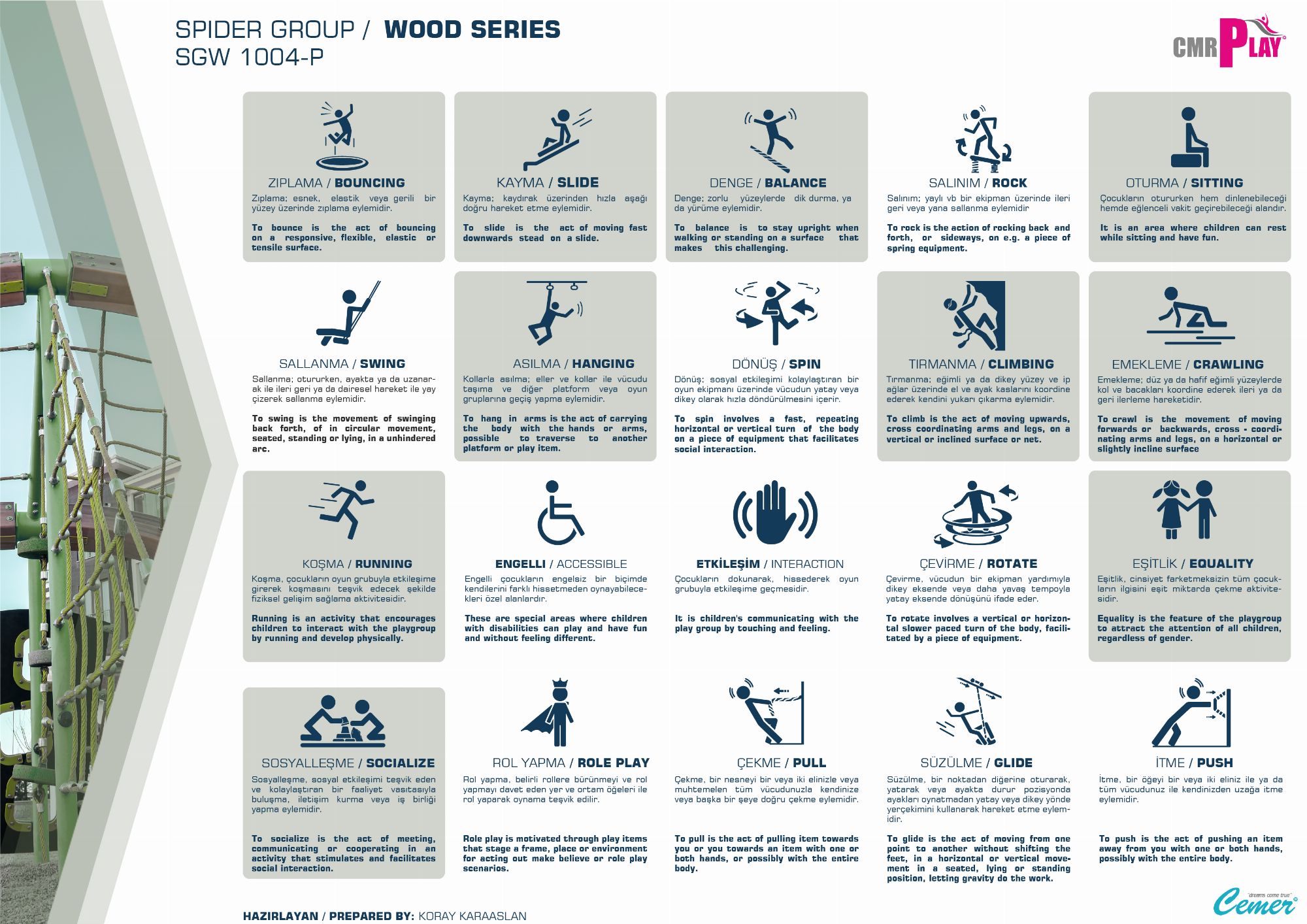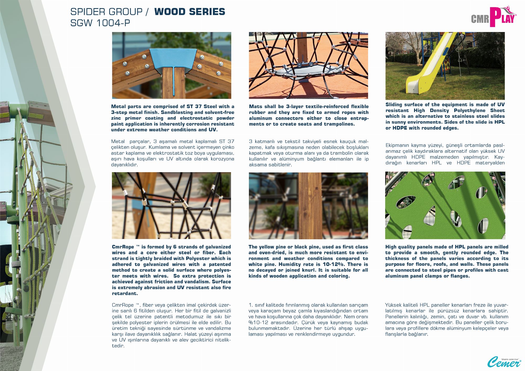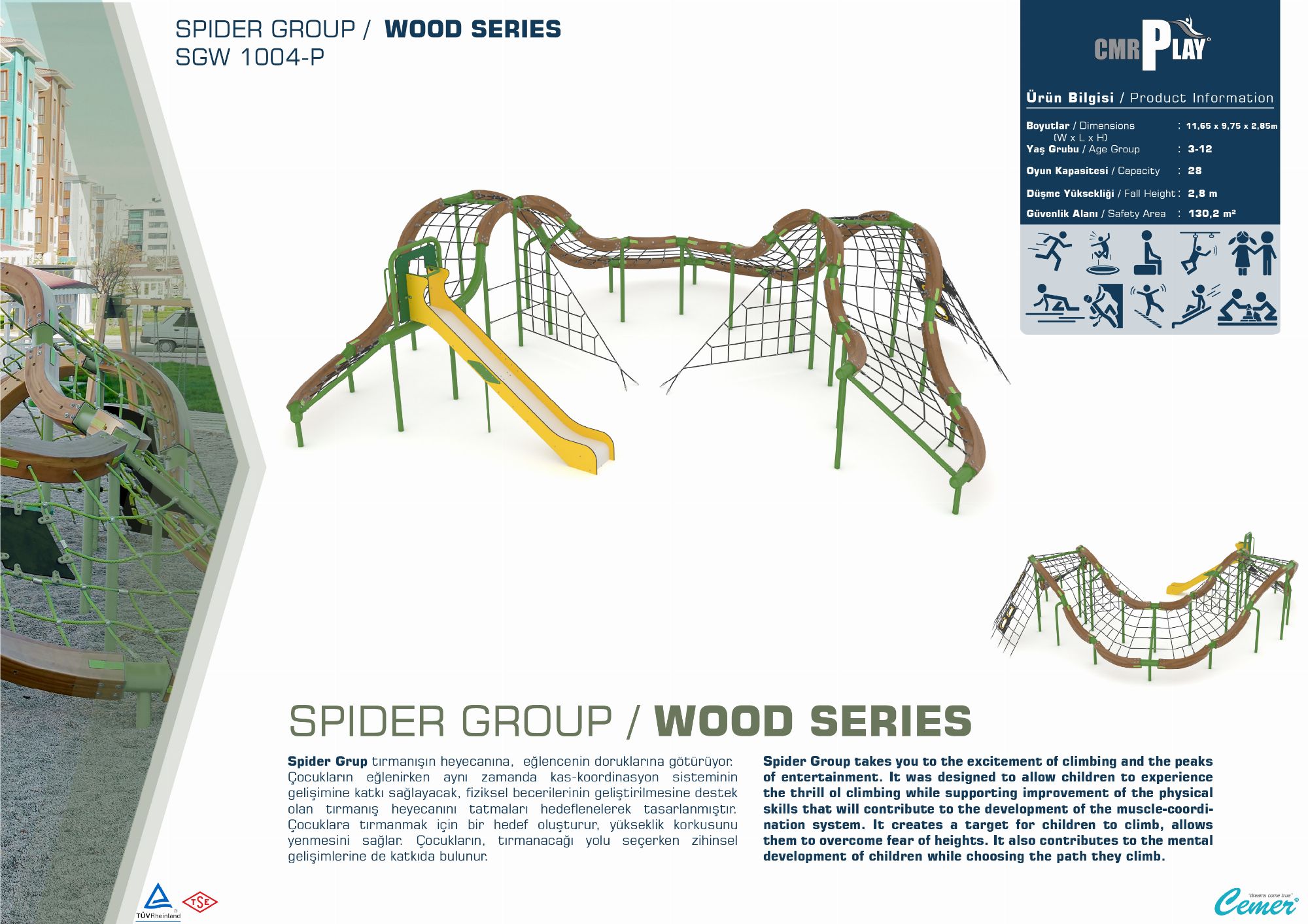 SPIDER GRUP - SGW 1004 -P , çocuklar için tasarlanmış ahşap iskeletten oluşan bir oyun parkıdır. Tırmanma halatları ve interaktif çeşitli oyun elemanları ile donatılmıştır .