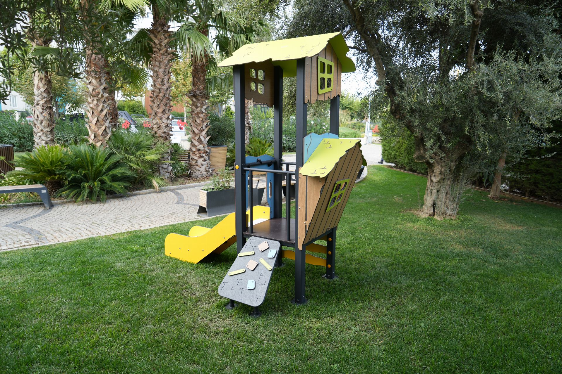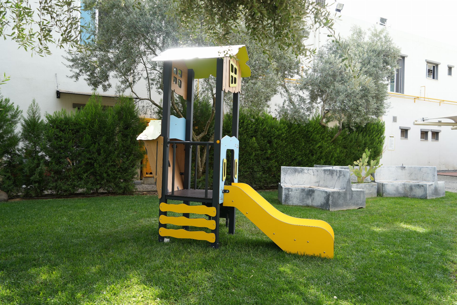 Çocuk Oyun Parkı Tetto Serisi (DGTS 101-P), çocukların eğlenceli ve güvenli bir şekilde vakit geçirebileceği, gelişimlerini destekleyen çeşitli oyun aktivitelerini sunan bir oyun grubudur. Tasarımı, renkli yapıları ve eğlenceli unsurlarıyla çocukların ilgisini çeker. Koordinasyon, denge, motor becerileri gibi becerilerin geliştirilmesine yardımcı olurken, aynı zamanda sosyal etkileşim ve takım çalışması gibi önemli beceriler de kazandırır.