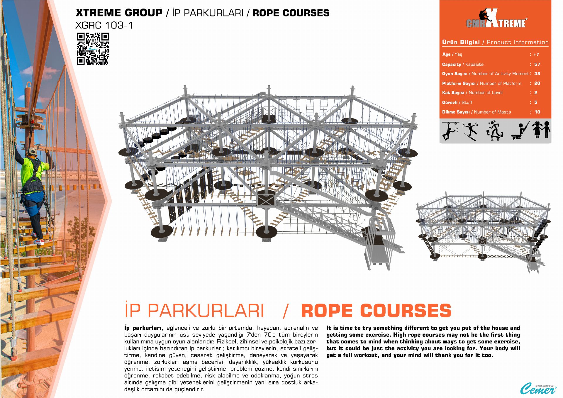 İp Parkurları XGRC 103-1, macera severler için özel olarak tasarlanmış, fiziksel ve zihinsel becerileri geliştirmeye yönelik dinamik bir oyun grubudur. Bu parkur, denge, hız ve koordinasyon gerektiren çeşitli zorluk seviyelerindeki ip geçişleriyle kullanıcıların strateji geliştirme, özgüven kazanma ve cesaretlerini artırma gibi yeteneklerini pekiştirir. 7'den 70'e tüm bireylerin eğlenceli ve güvenli bir ortamda heyecan ve adrenalin dolu anlar yaşamasını sağlar.