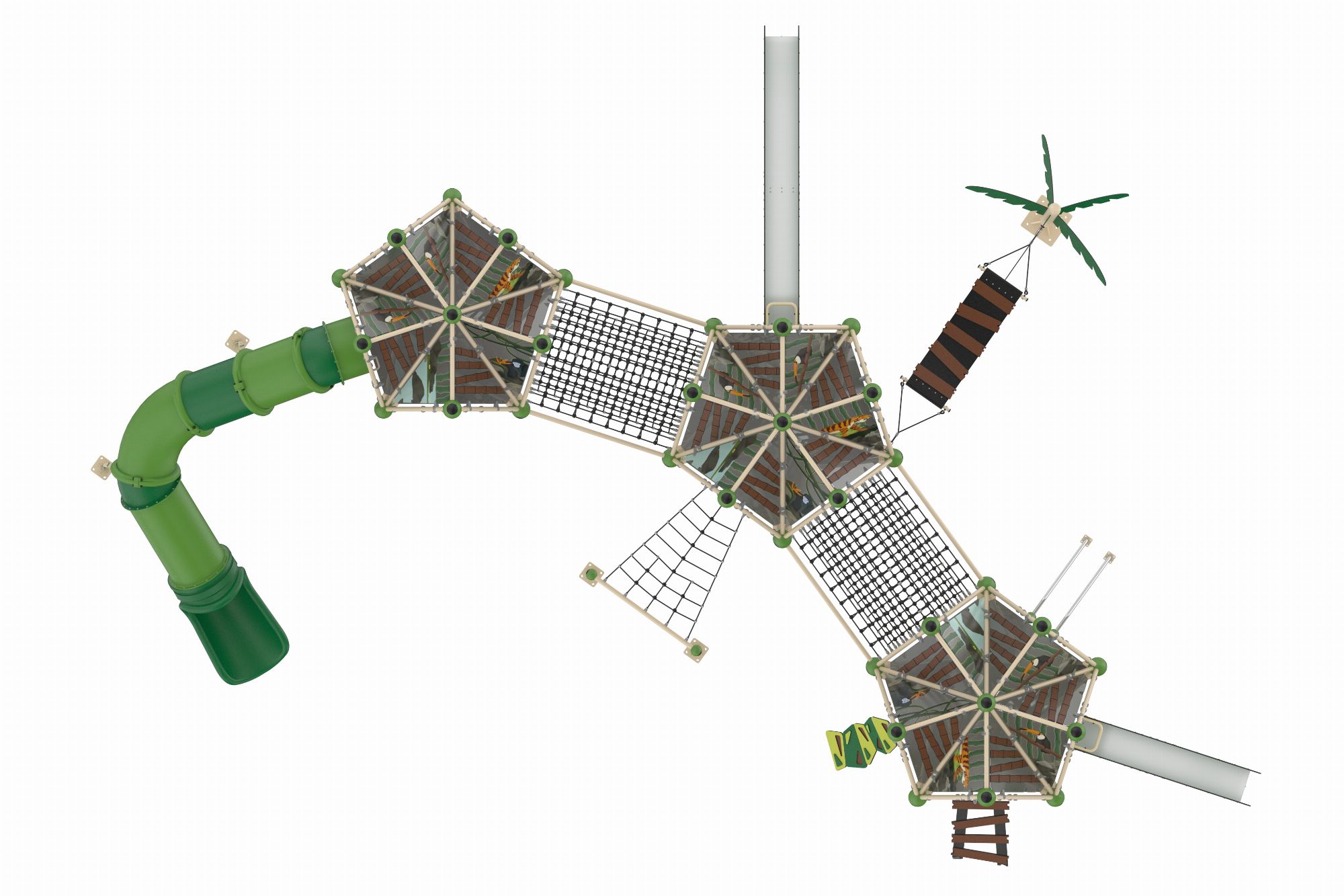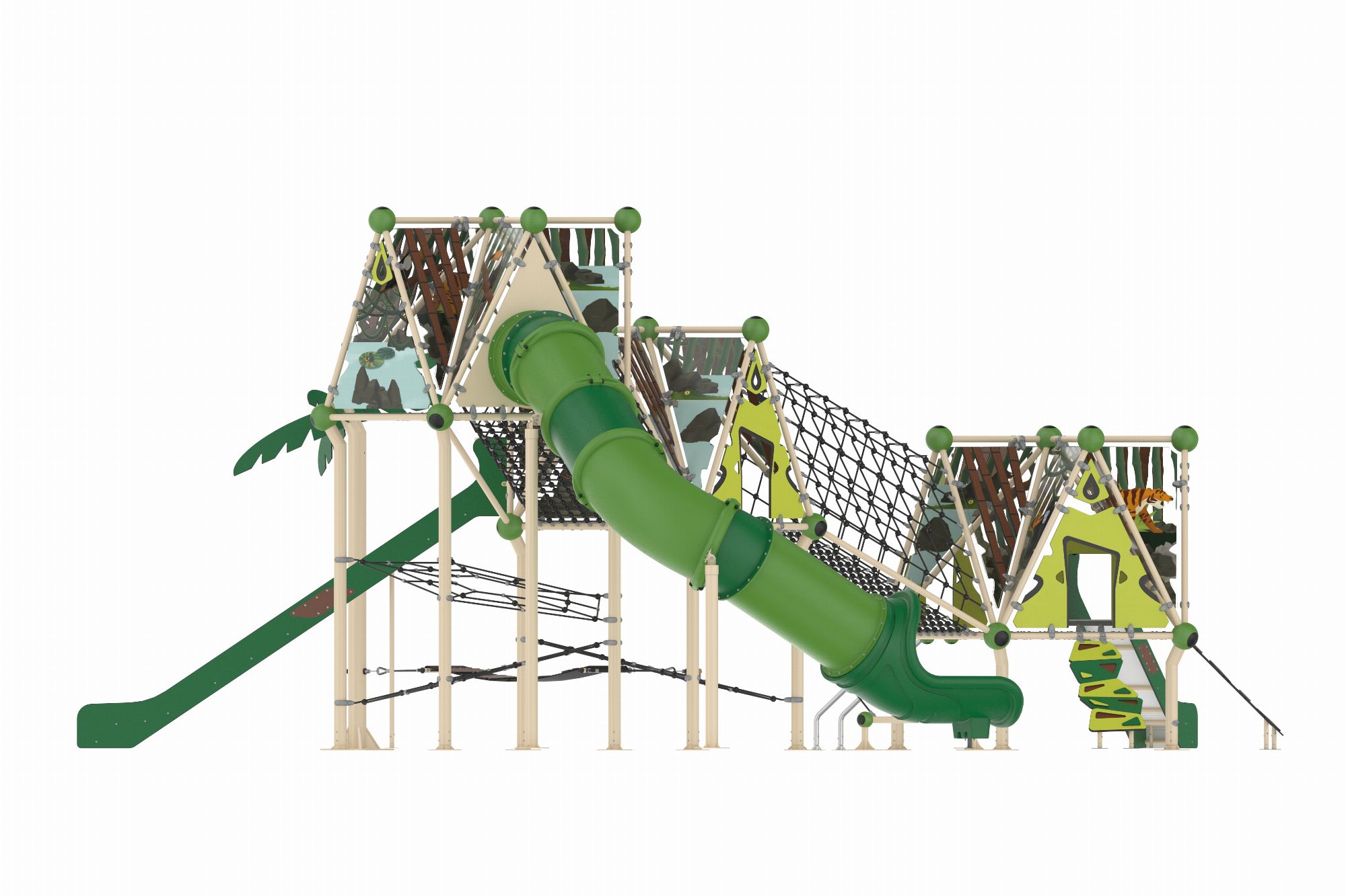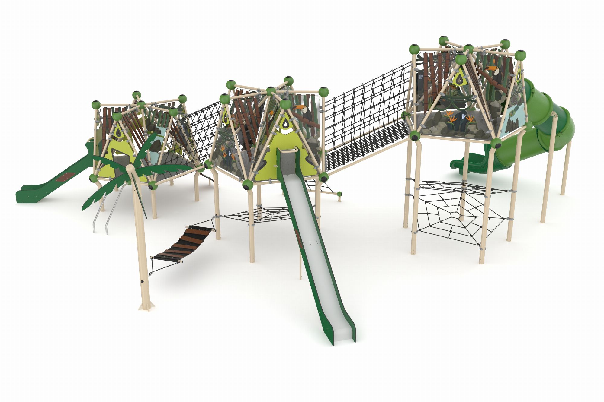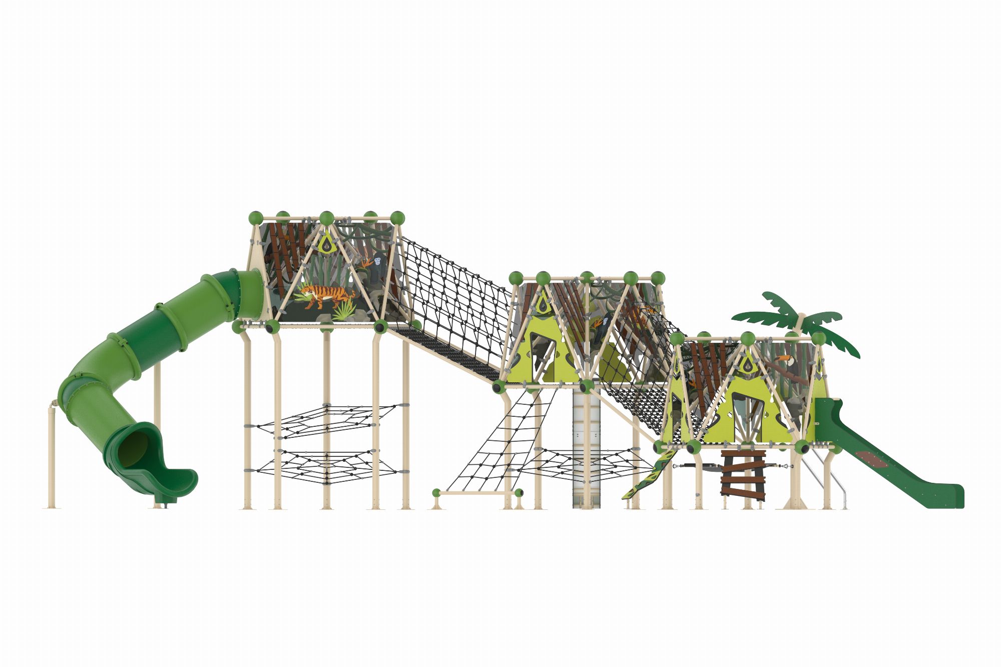GGJS 2017-P Temalı Oyun Parkı Grubu, Jungle Serisi'nin enerjik ve doğal tasarımını yansıtan eğlenceli bir oyun alanıdır. Çocukların hem fiziksel gelişimlerini destekler hem de eğlenceli vakit geçirmelerini sağlar. Orman temasını benimseyen tasarımı sayesinde çocukların doğa ile ilgili farkındalıklarını artırır. Dayanıklı malzemelerden üretilmiş olup, dış mekanlarda uzun ömürlü kullanım sunar. 1 adet çift cidarlı plastik kaydırak 2 adet HDPE malzemeden üretilmiş kaydırak vardır.