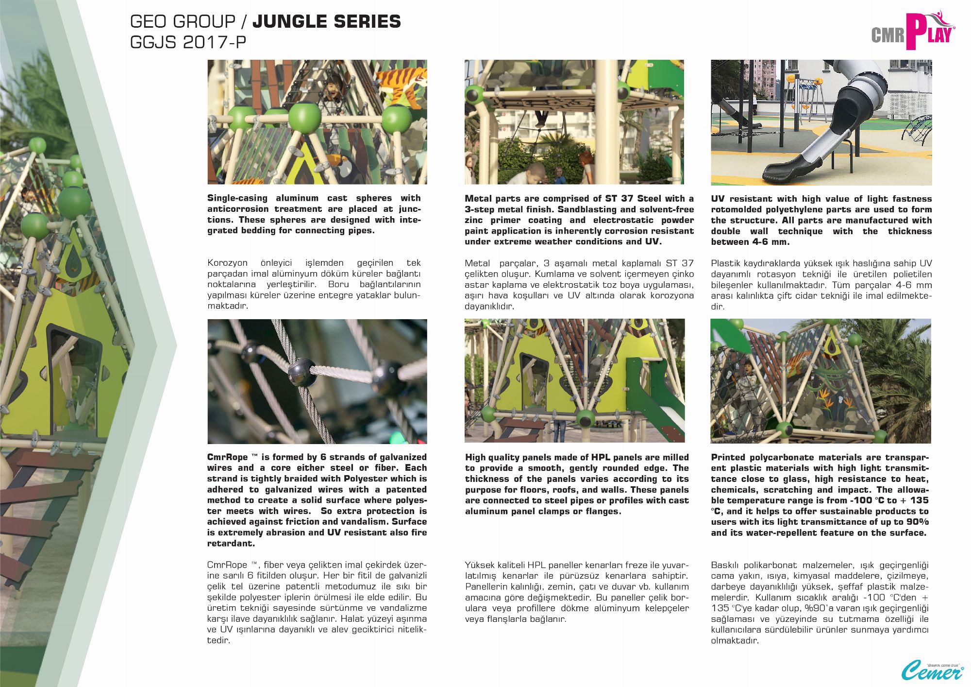 Hikayemiz bir düş ile başladı. Cemer Kent Ekipmanları olarak sektöründe öncü firma olmanın verdiği bilinçle, fikirden üretime kadar tüm süreci 30 yıldır güvenliği esas alarak yönetiyoruz. Sizlere güven sağlıyoruz.