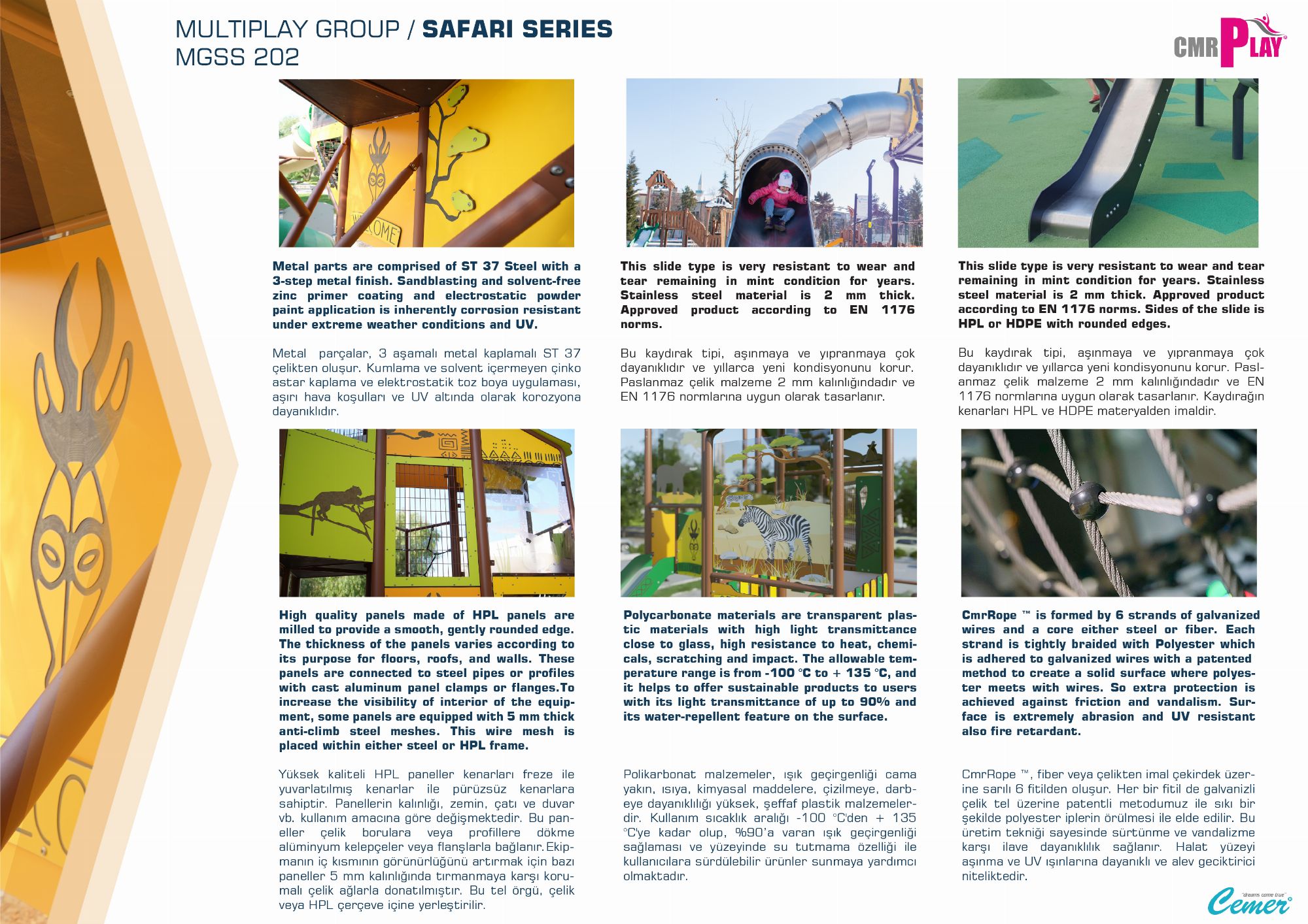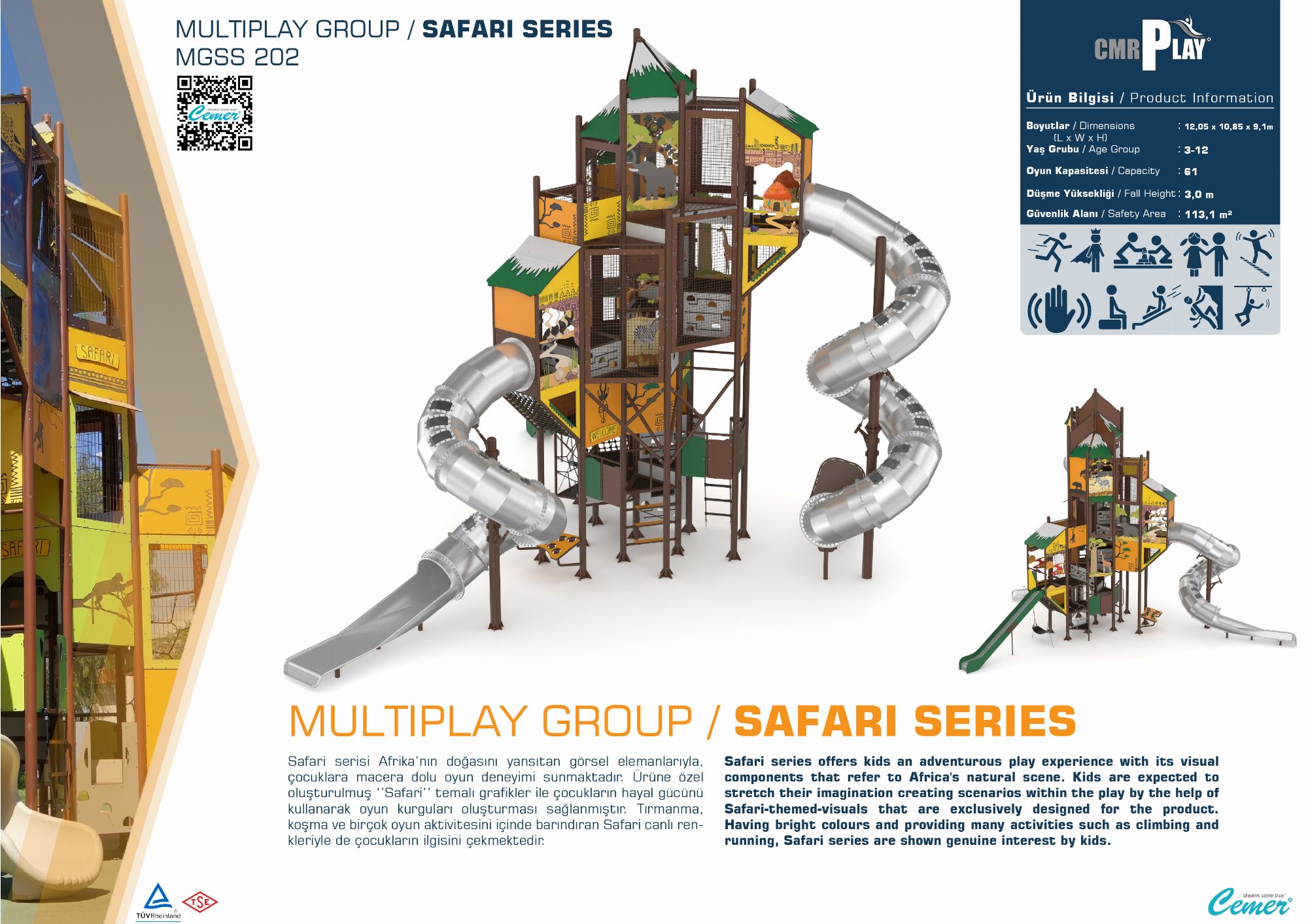 -SAFARİ SERİSİ MGSS 202, her türlü açık alanda güvenle kullanılabilecek ve çocuklara güvenli bir oyun alanı sunan bir üründür.