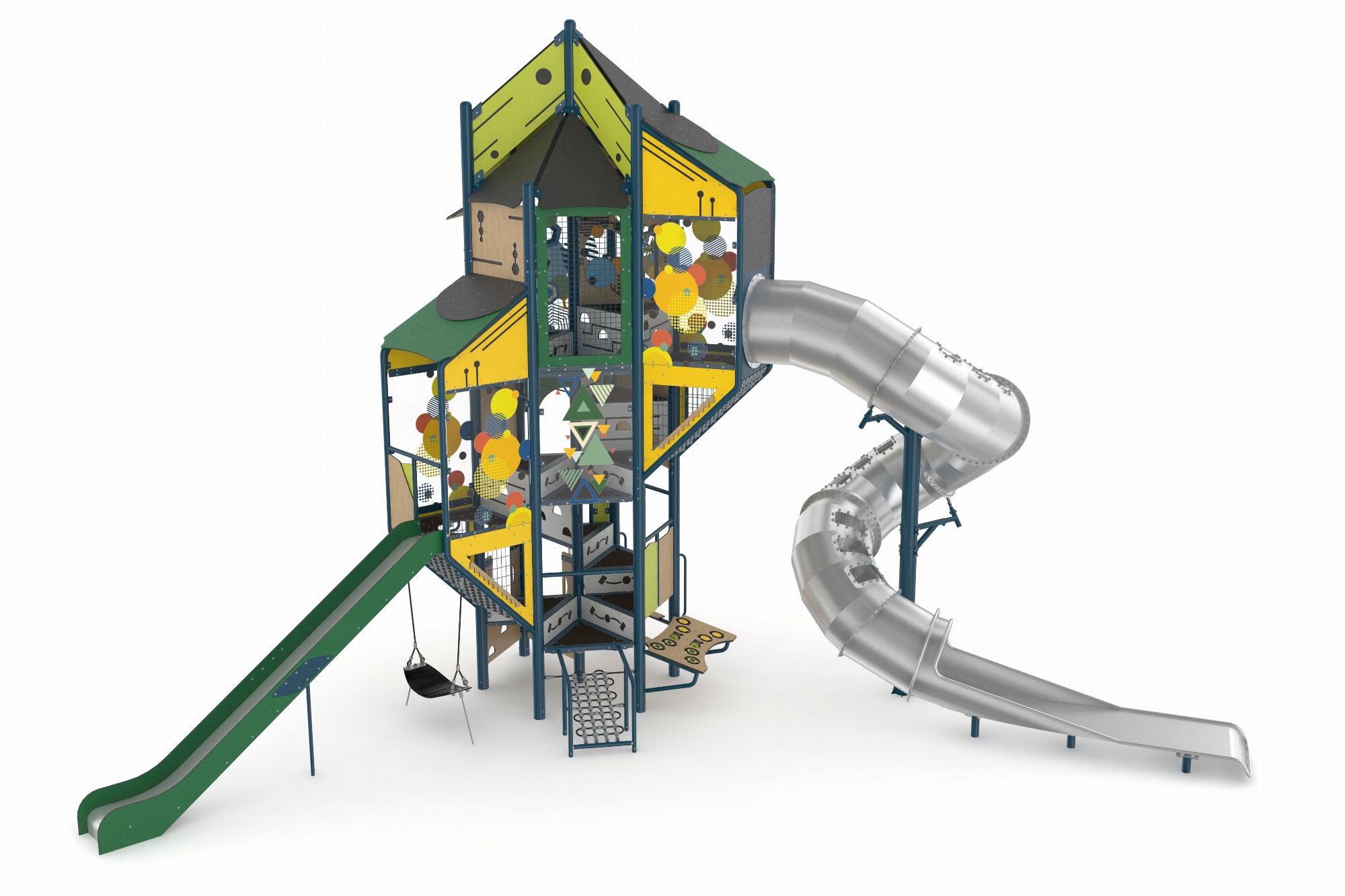 BIGGIES SERİSİ MGBS 101-P,Modern oyun alanlarına dinamik bir enerji ve renkli bir estetik getiren özgün bir tasarım harikası olan bu seçkin oyun parkı, çok katmanlı yapısı ve çeşitli oyun elemanlarıyla dikkat çeker. Geometrik formların ve canlı renklerin uyumlu birlikteliği, bulunduğu oyun alanına çağdaş bir düzen ve görsel zenginlik katar. Farklı tırmanma yüzeyleri, kaydıraklar, köprüler ve interaktif aktiviteler, çocukların fiziksel becerilerini geliştirirken hayal güçlerini de besler.