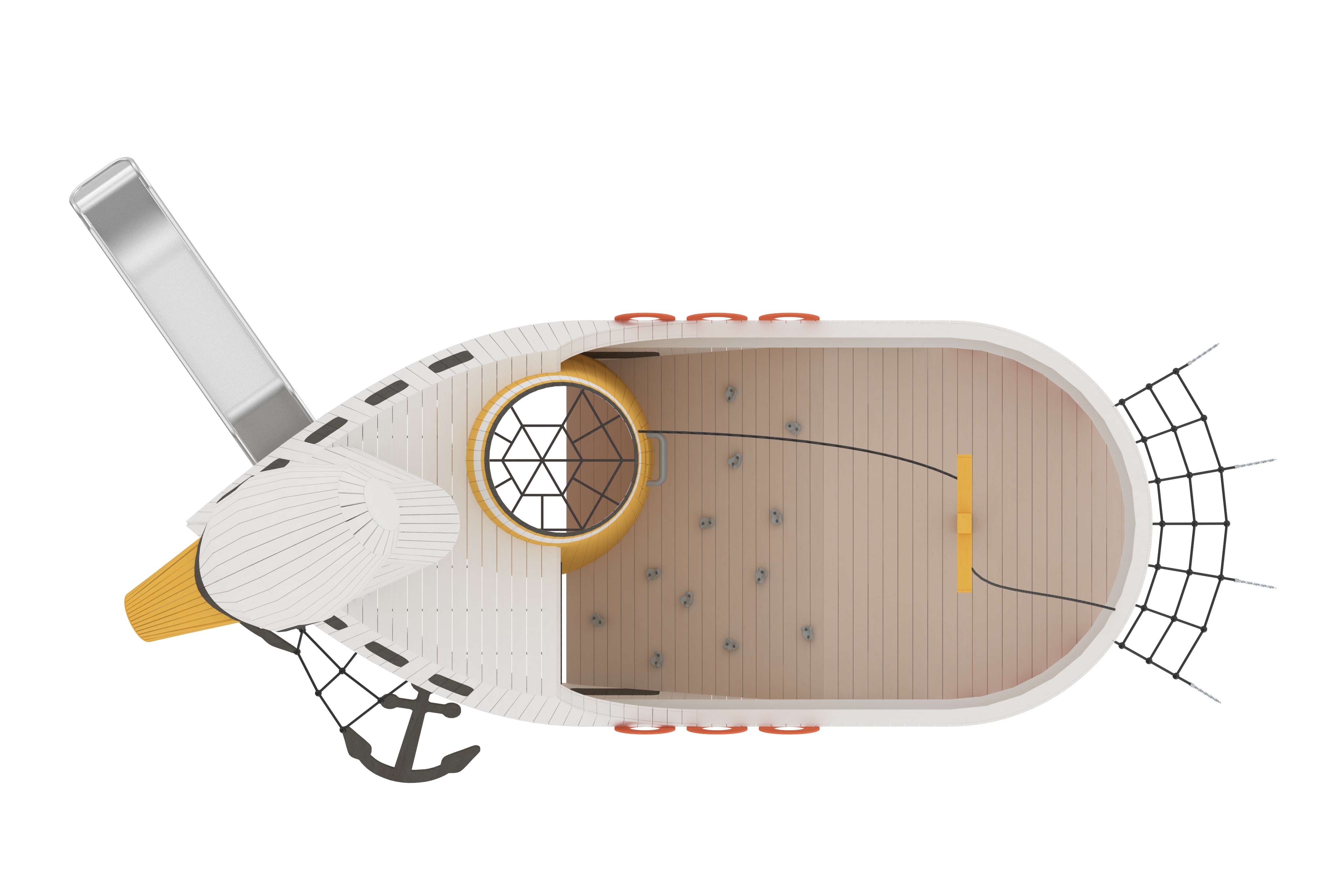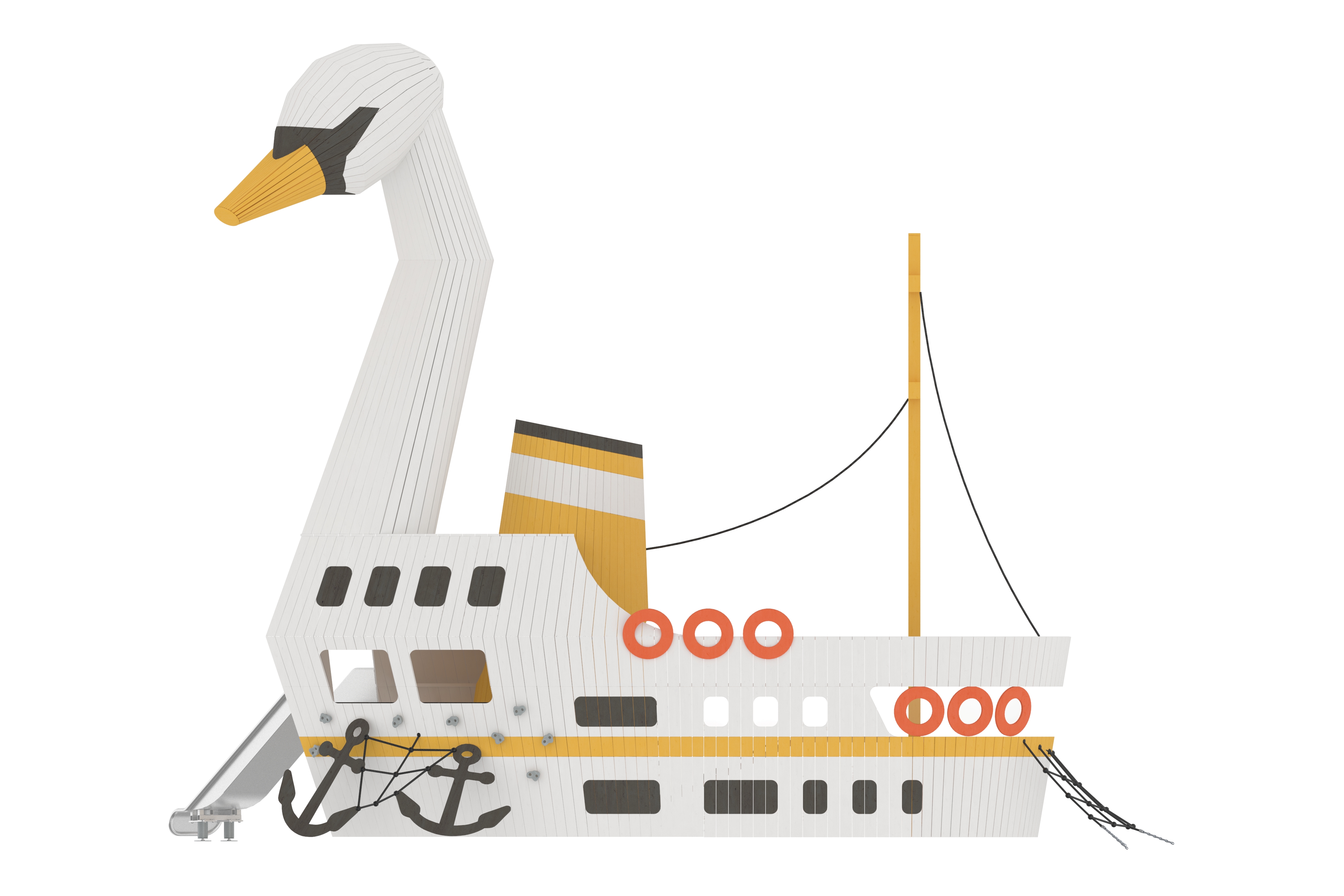 İstanbul’un simgelerinden İstanbul Şehir Hatları Vapurları, kuğu formuyla birleşerek zarif ve akıcı bir oyun objesine dönüşüyor.  Suyla kurulan ilişki, yumuşak hareketler ve denge deneyimi üzerinden çocuklara aktarılıyor. Bu tasarım, kentsel ulaşım imgesini doğadan ilham alan bir oyuna çeviriyor.