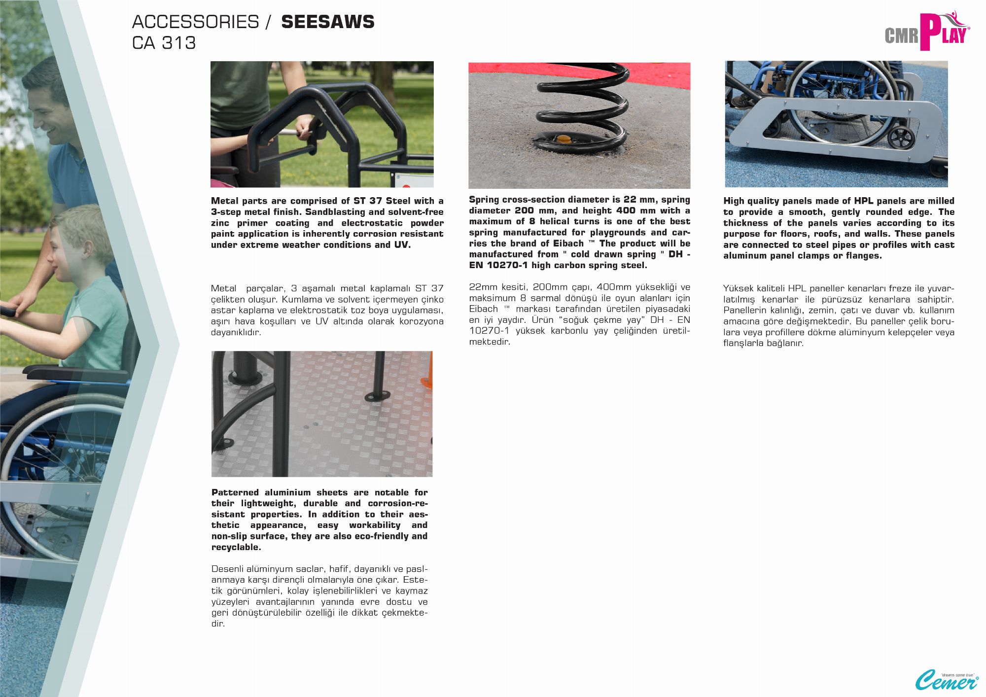Cemer Kent Ekipmanları EN standartlarına uygun zemin uygulamaları , darbe emici özelliklere sahip olup güvenliği sağlar.