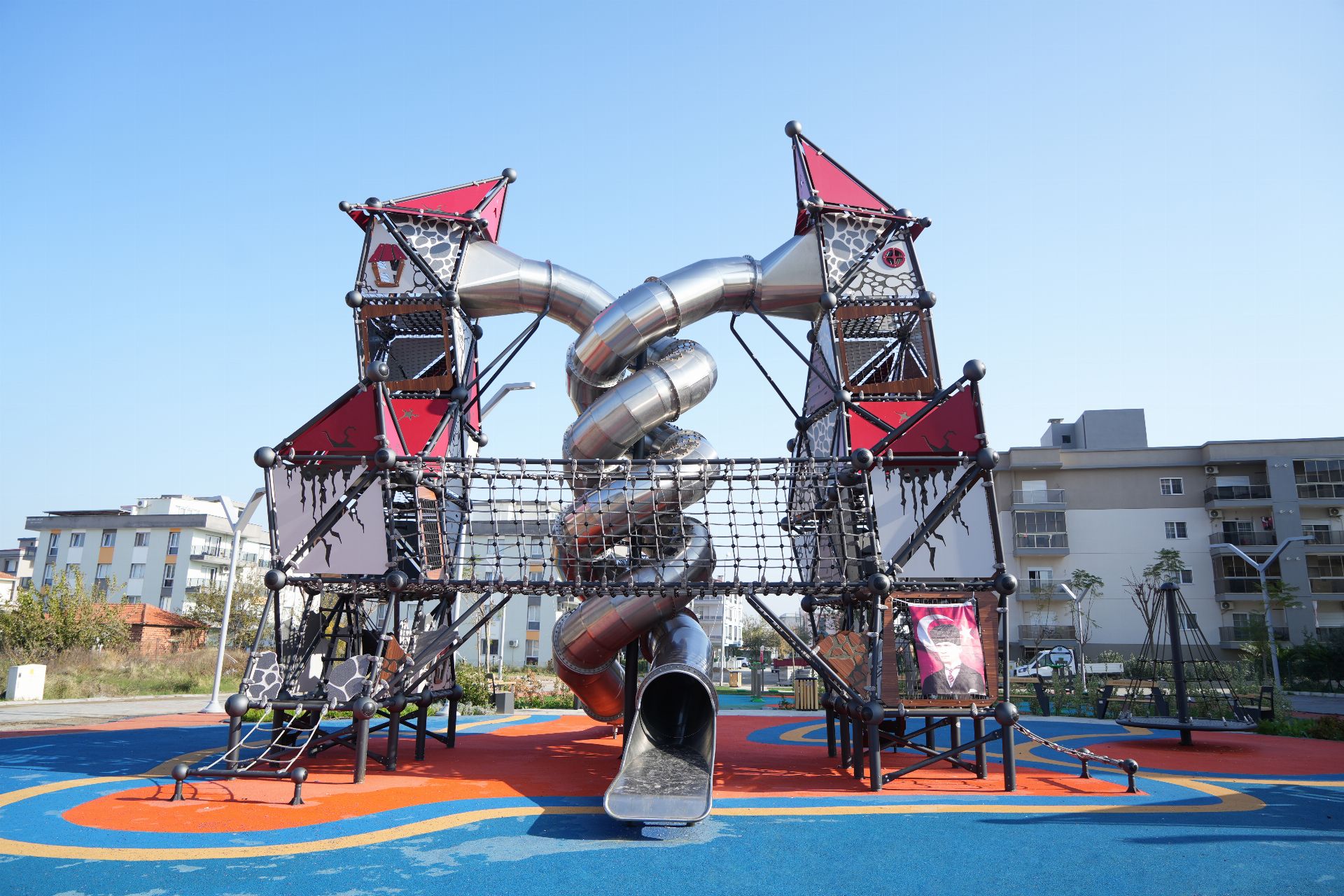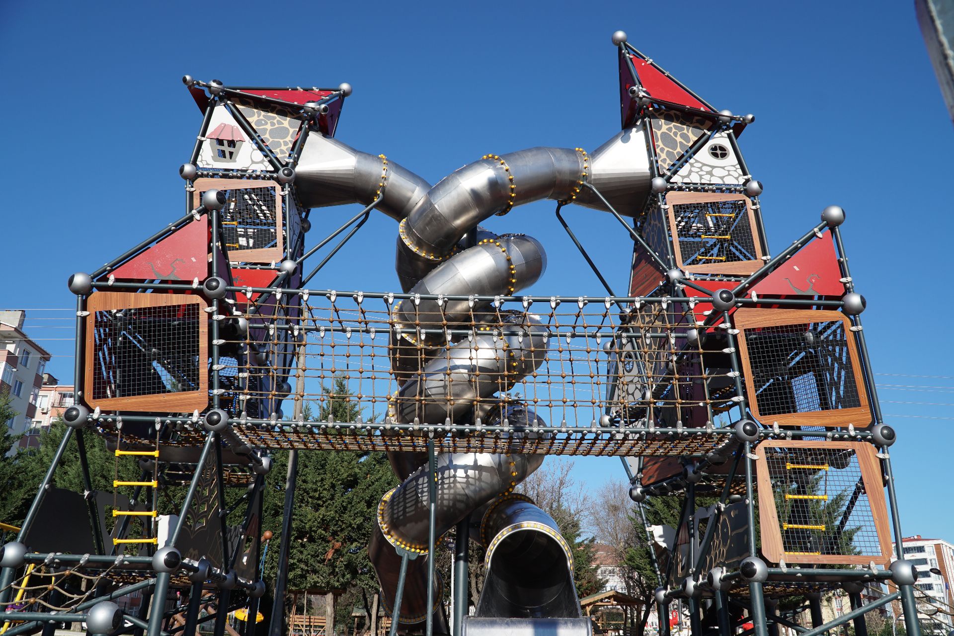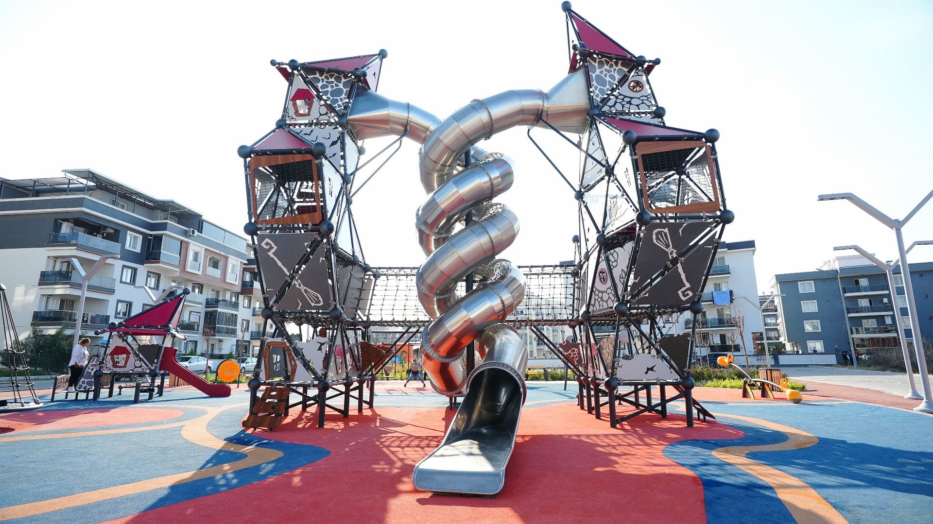 Yeni Nesil Çocuk Oyun Parkı Witch Serisi GGWS 1010 - P, çocukların güvenli bir şekilde oyun oynayabileceği modern ve fonksiyonel bir oyun alanıdır. İkili tünel kaydırak bulunan ürün tasarımıyla da dikkat çeker. Ürünün ortasında iki kuleyi birbirine bağlayan köprü çocuklar için farklı bir deneyim sunar.