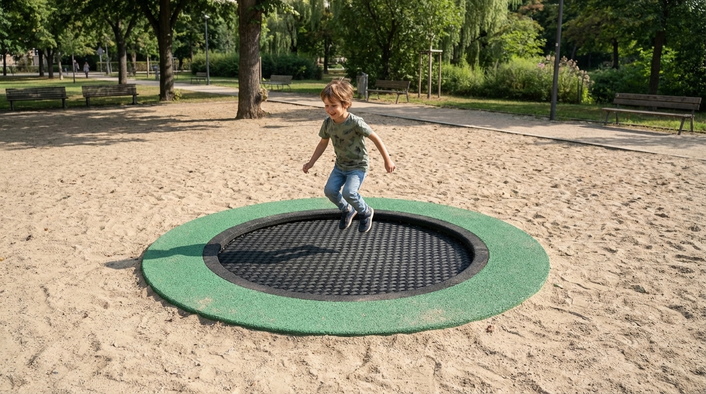 3 katmanlı ve tekstil takviyeli esnek kauçuk malzeme, trambolinde zıplama yüzeyi olarak kullanılır. Yaylar ile çerçeveye sabitlenir.Yaralanmaları önlemek ve darbe sönümleme için metal çerçeve üzerine 18mm kauçuk kaplama uygulanır. Zararlı madde içermez.