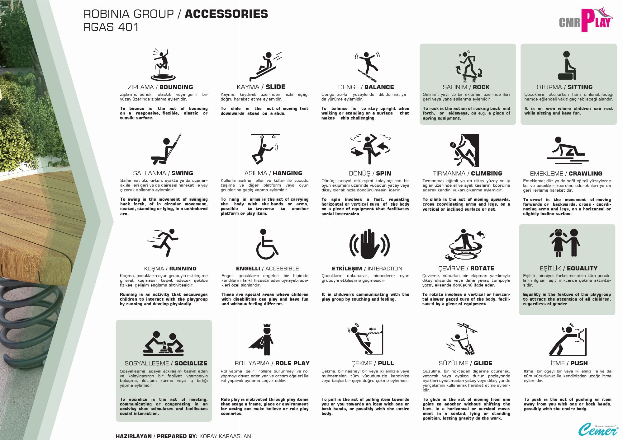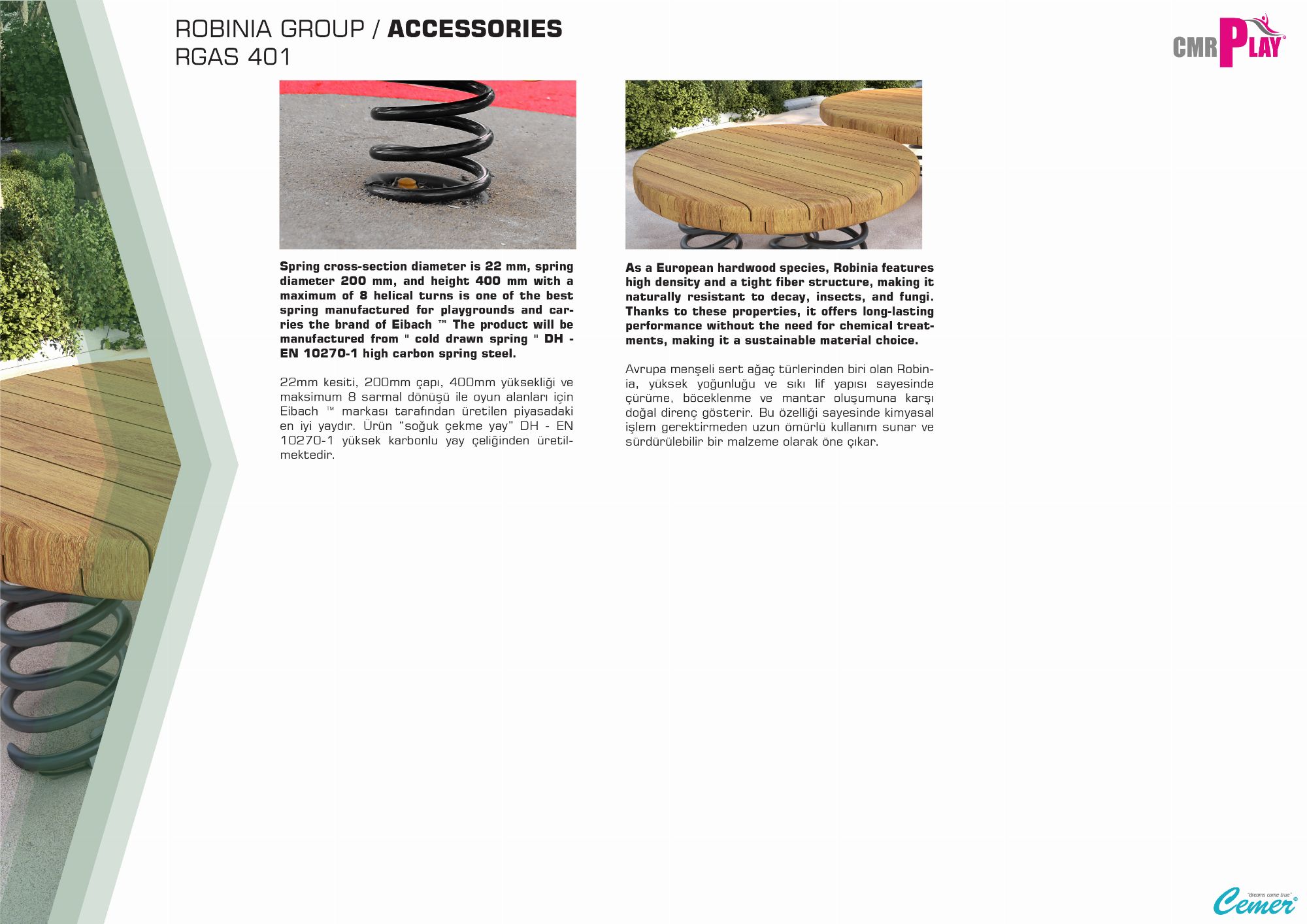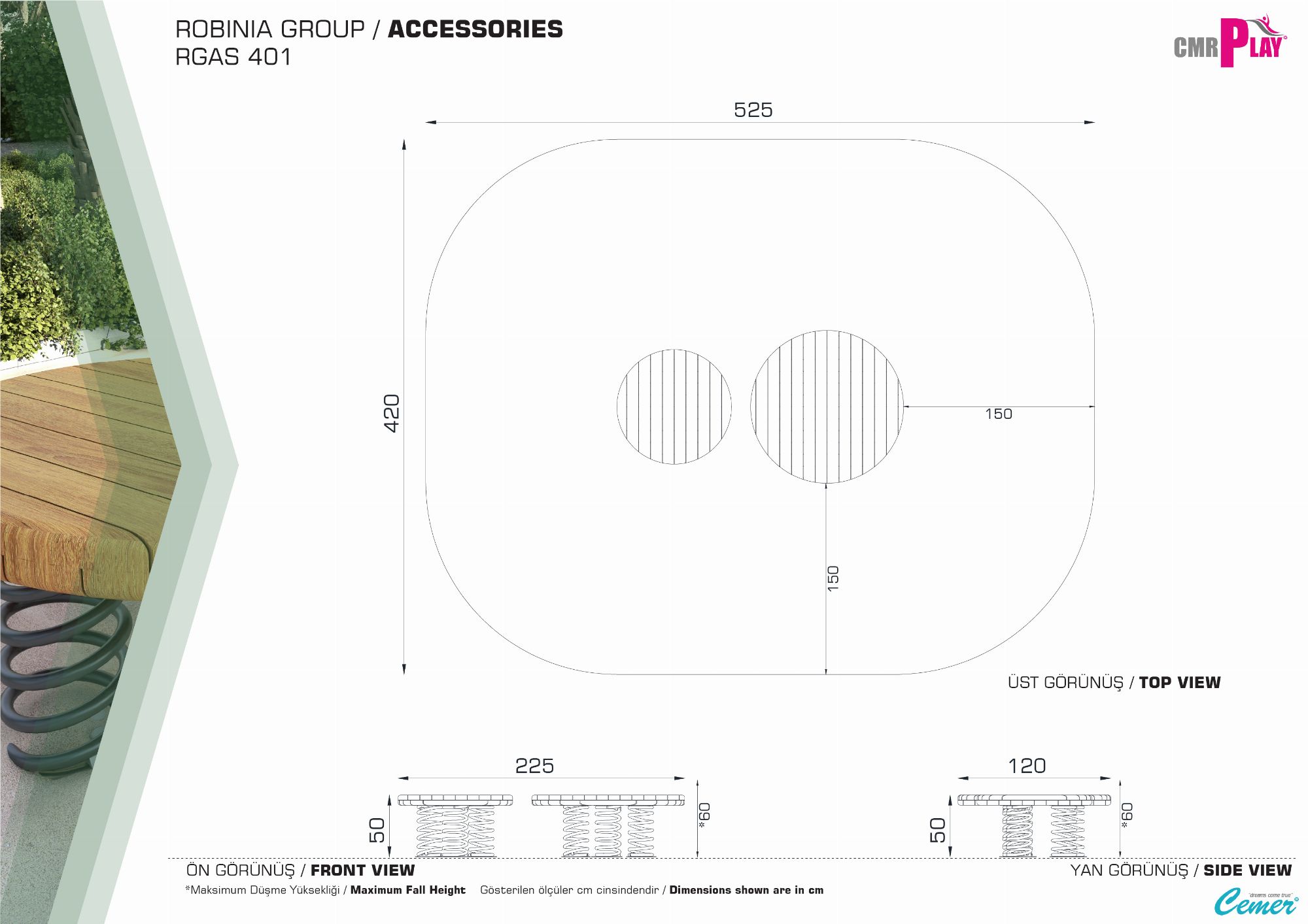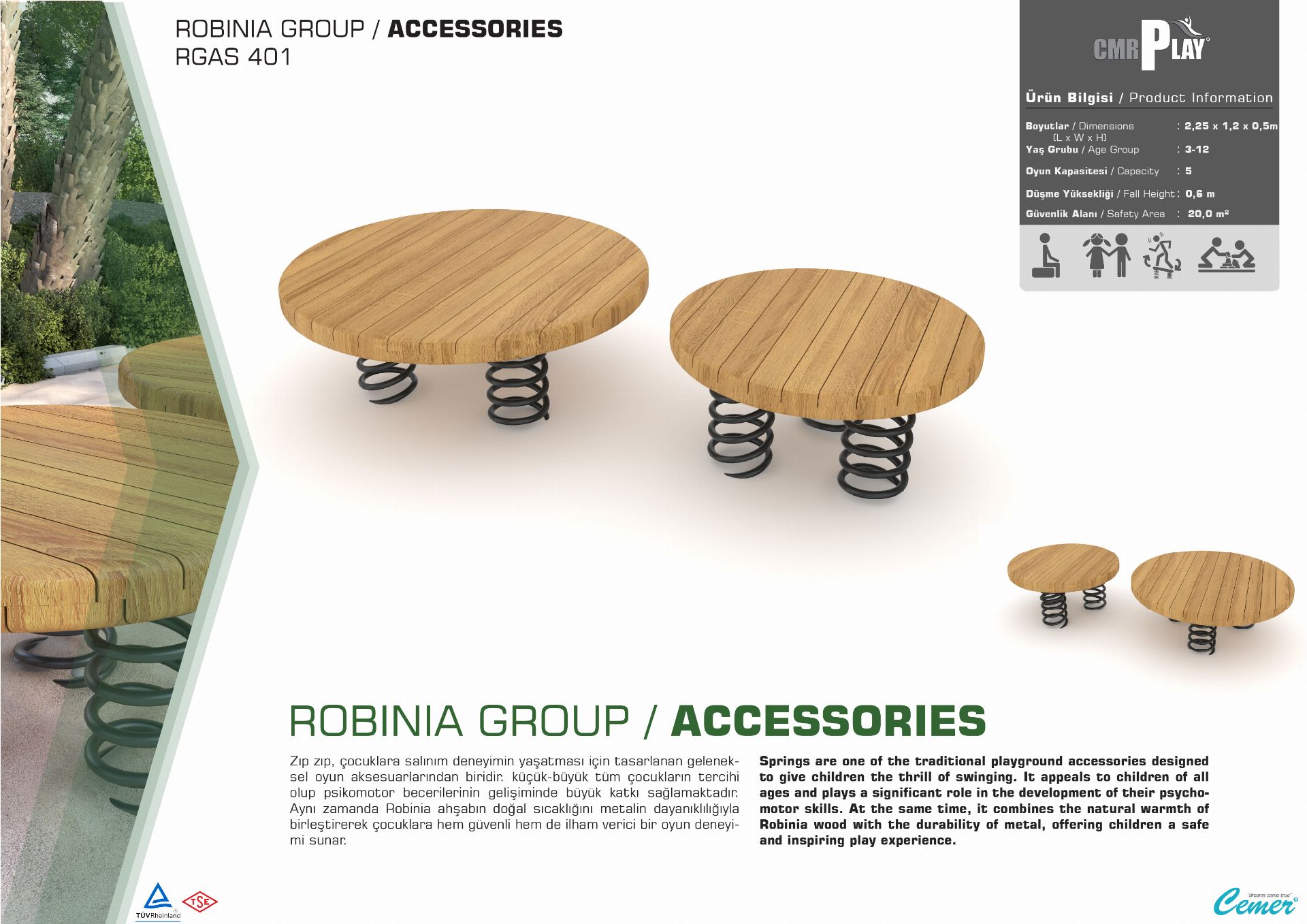 Cemer Kent Ekipmanları EN standartlarına uygun zemin uygulamaları , darbe emici özelliklere sahip olup güvenliği sağlar.